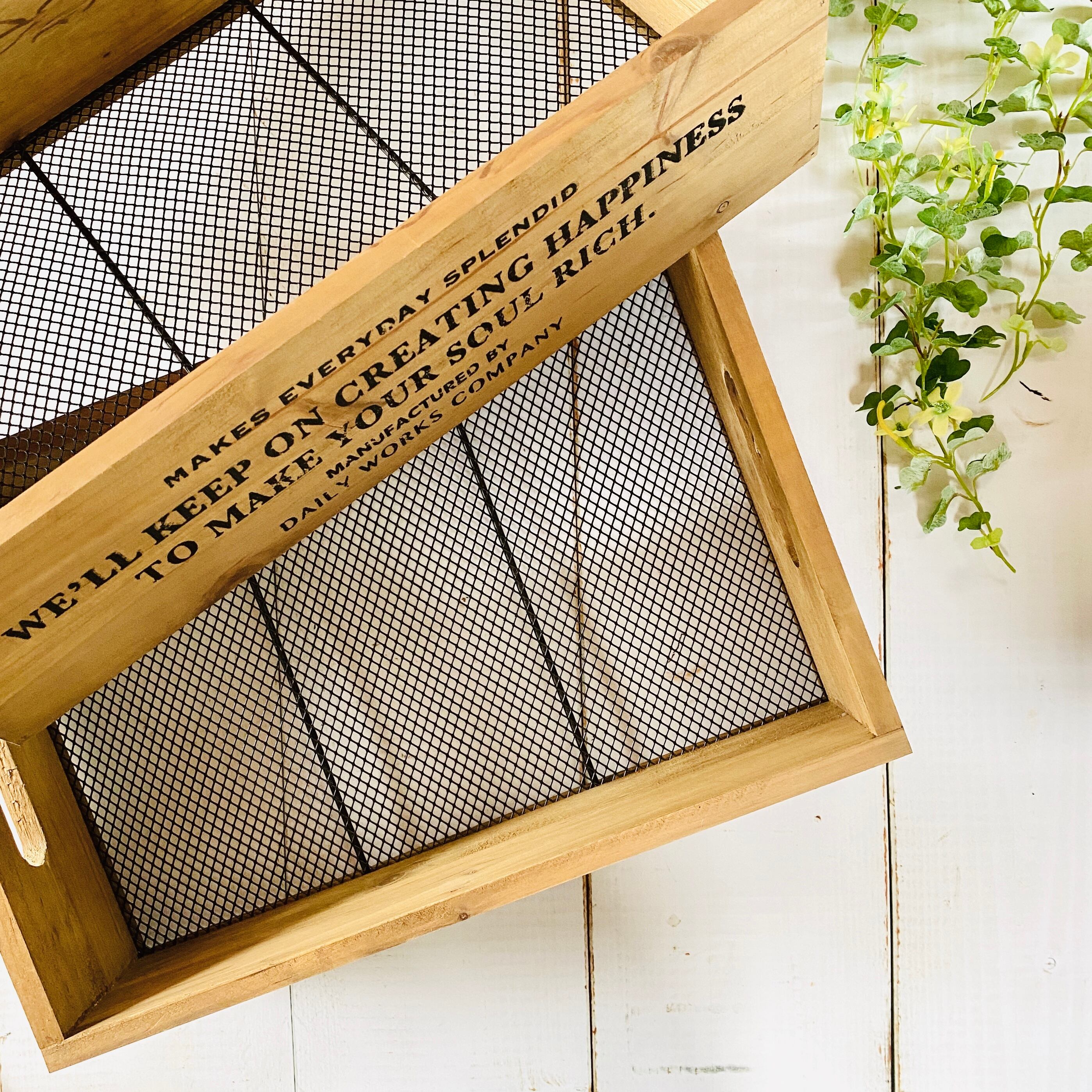 ガーデニングなどで活躍する、ウッドメッシュボックスです。