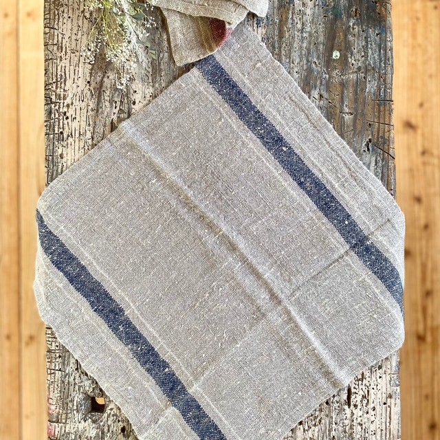 手紡ぎリネンのクロスです。 ざっくりとした風合いで、テーブルや棚のプレイスマットとしてお使い頂くと、素朴でナチュラルな雰囲気を演出できます。 手紡ぎのリネン糸を使用しているため、毛羽が出ます。 キッチンクロスとしてお使い頂くのは、毛羽が落ち着いてからにするのをお勧めします。 サイズ 約47×47cm