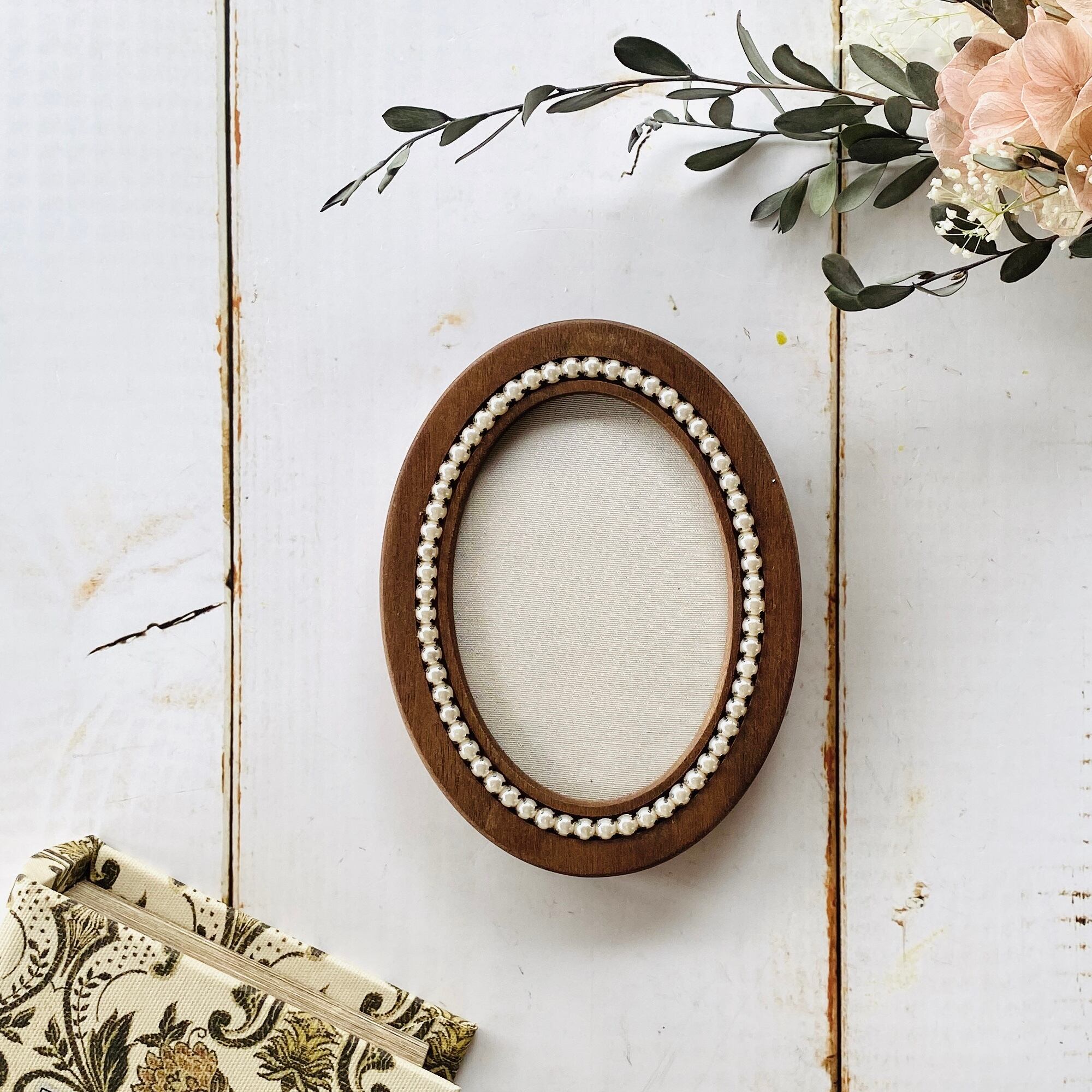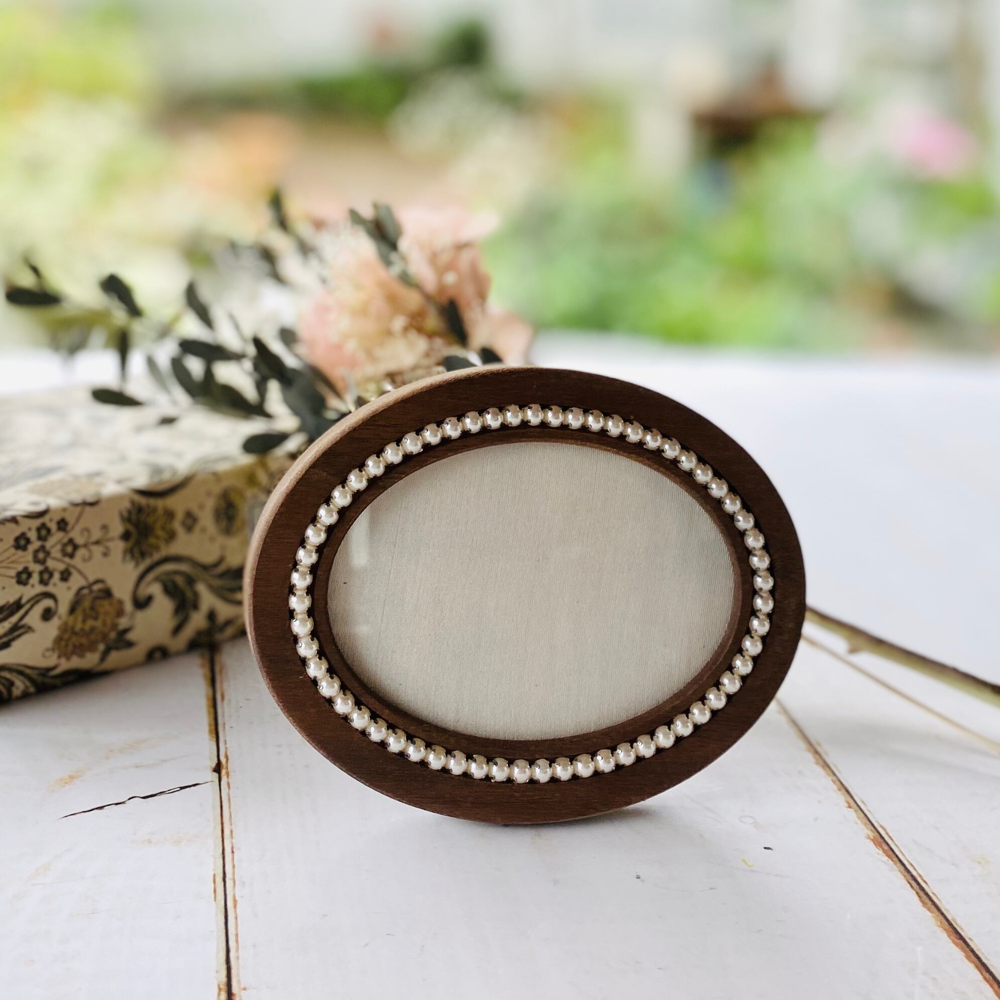 枠にラインパールか埋め込まれ大変エレガントな雰囲気のフレームです。