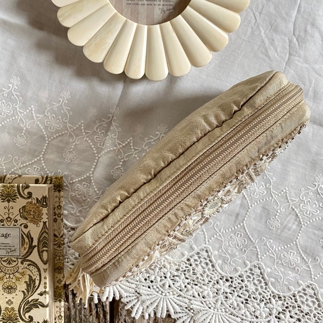 細やかなビーズがふんだんに施されたポーチです。 タッセルがアクセントにもなっています。 ※内ポケットあり 色違いもご紹介していますのてどうぞご覧くださいませ。 サイズ 幅約20cm 高さ約14cm マチ約4cm 生産地 インド