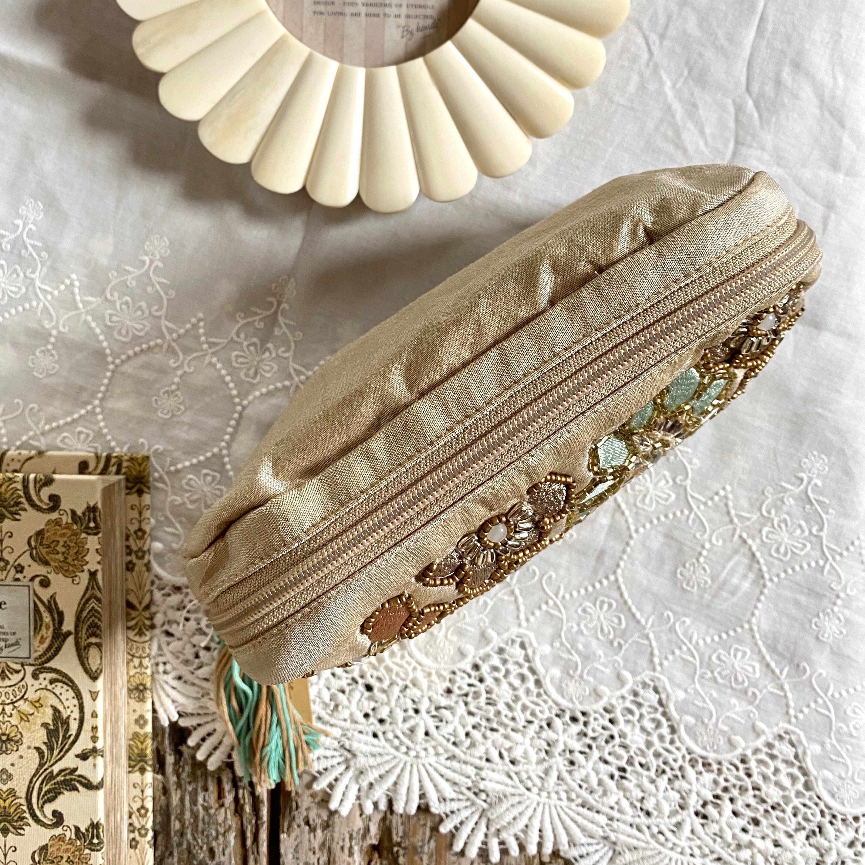 細やかなビーズがふんだんに施されたポーチです。 タッセルがアクセントにもなっています。 ※内ポケットあり 色違いもご紹介していますのてどうぞご覧くださいませ。 サイズ 幅約20cm 高さ約14cm マチ約4cm 生産地 インド