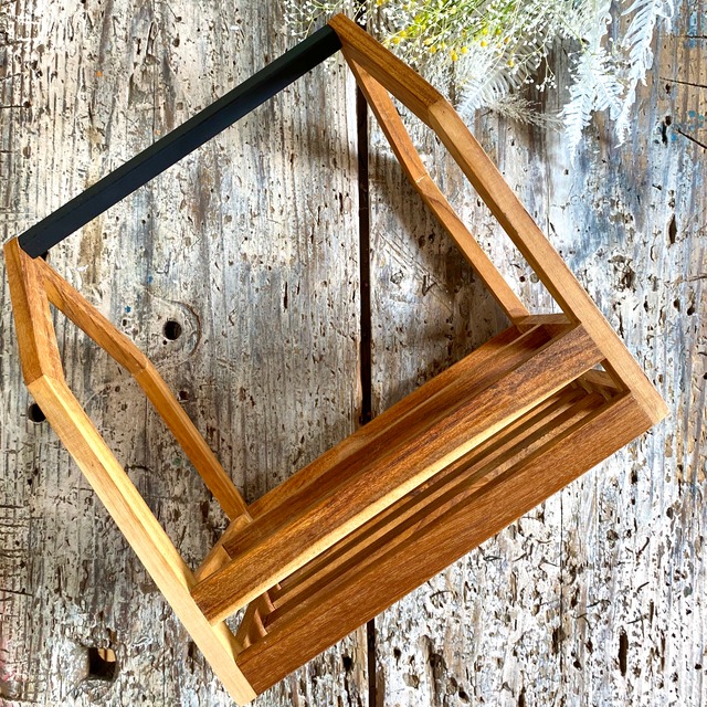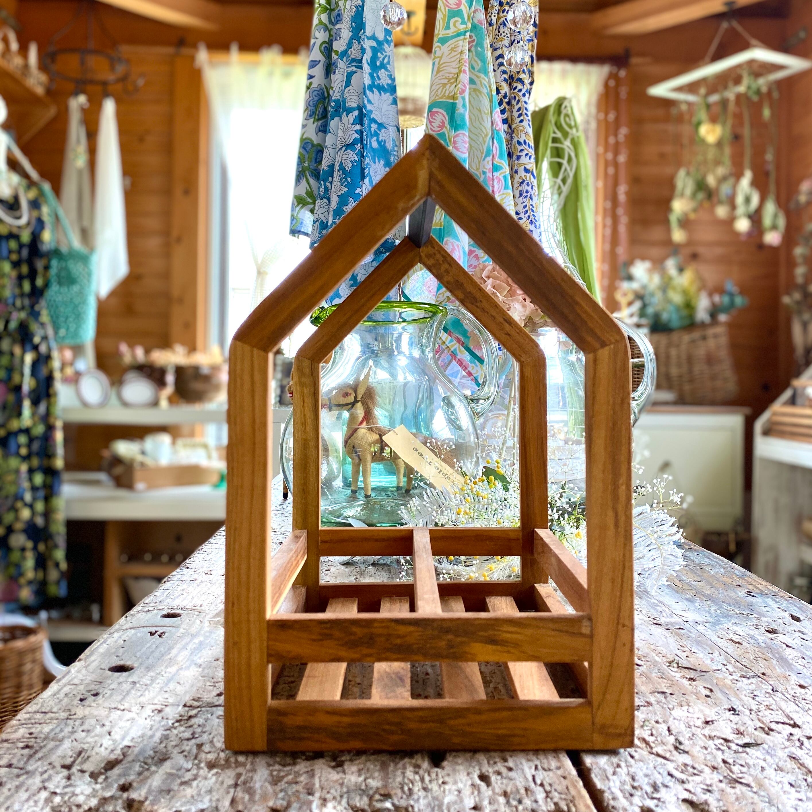 チーク材とアイアンの組み合わせがナチュラルでとてもおしゃれなハウス型のツールボックスです。