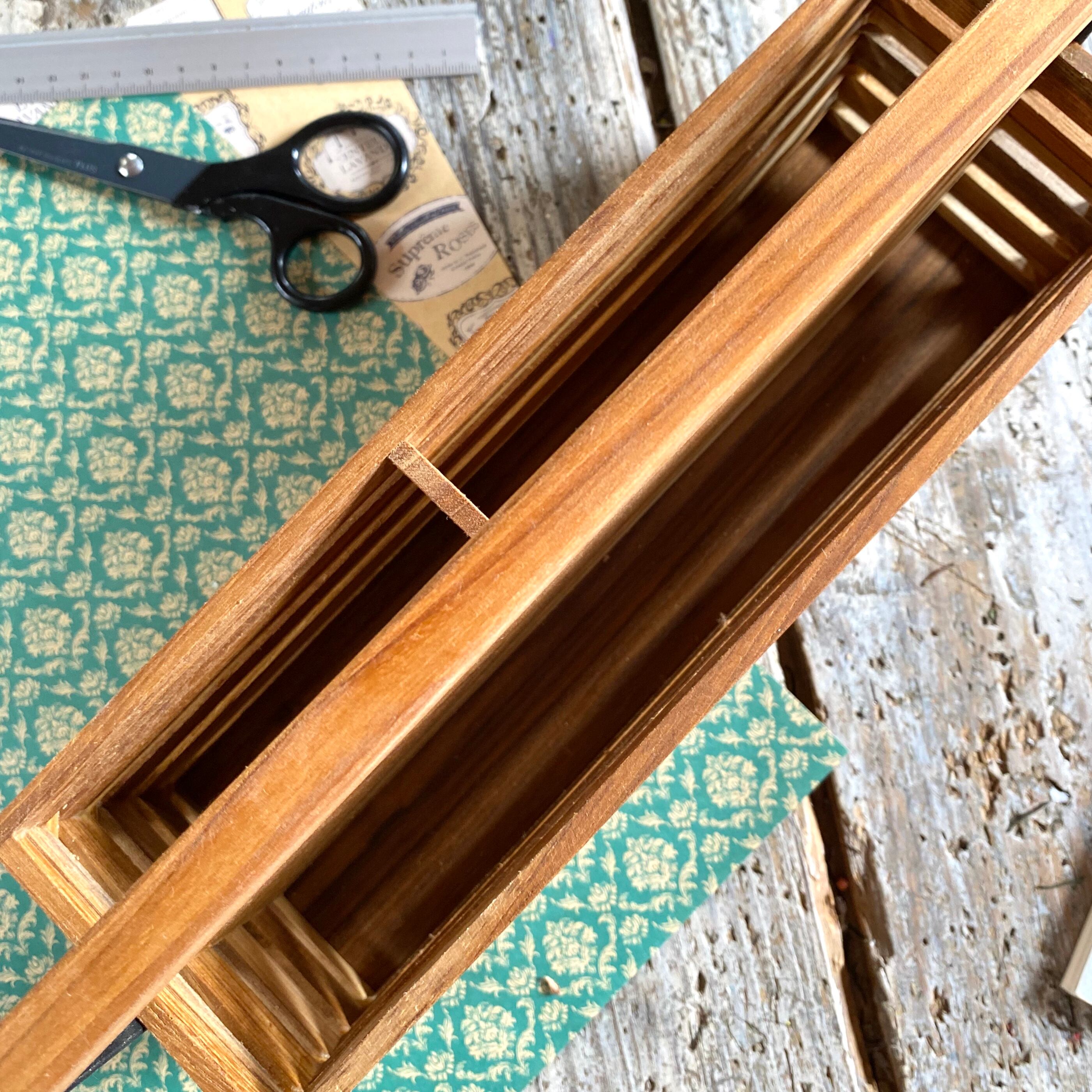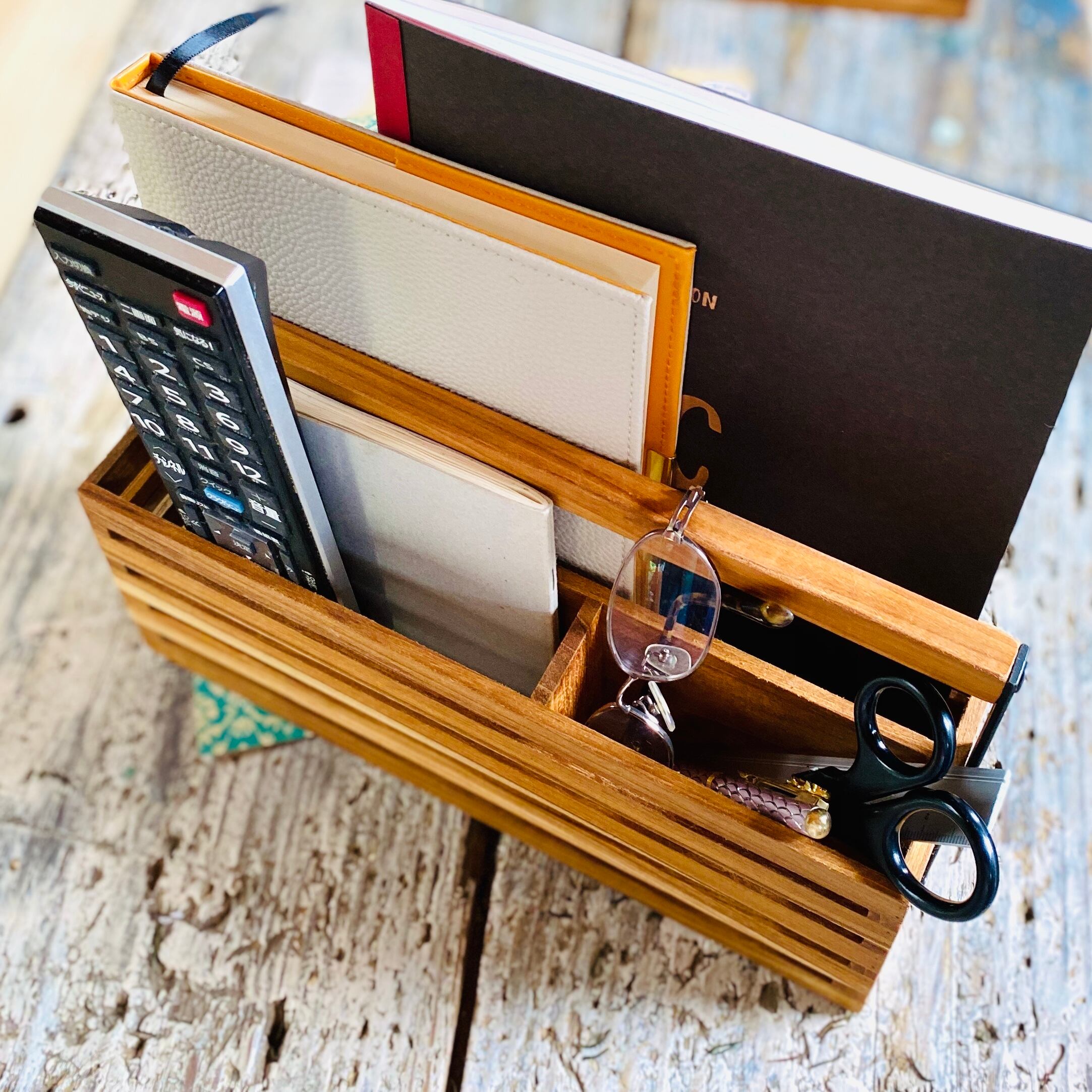 チーク材とアイアンの組み合わせがナチュラルでとてもお洒落な横長タイプのツールボックスです。
