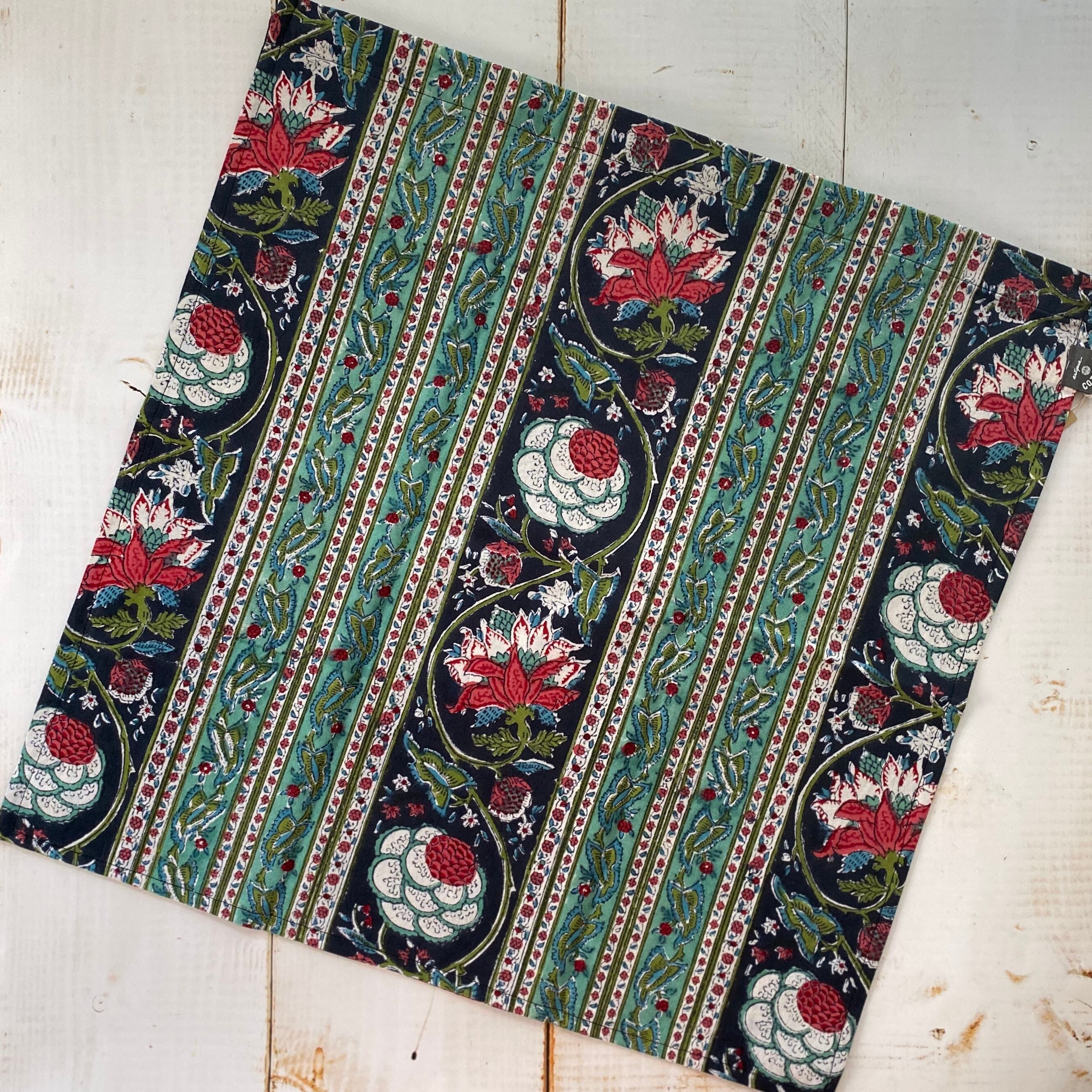 ボタニカル柄のブロックプリントのクッションカバーです。