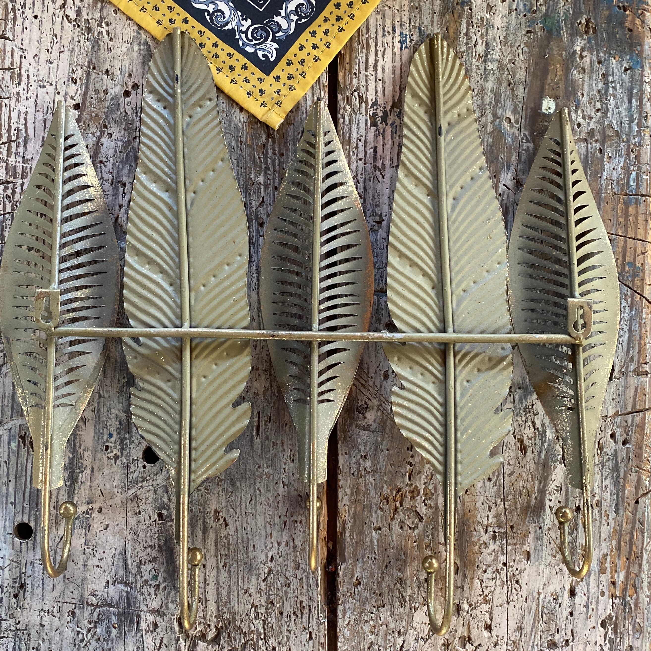 アイアン製のリーフとフェザーのモチーフが組み合わされたウォールフックです。