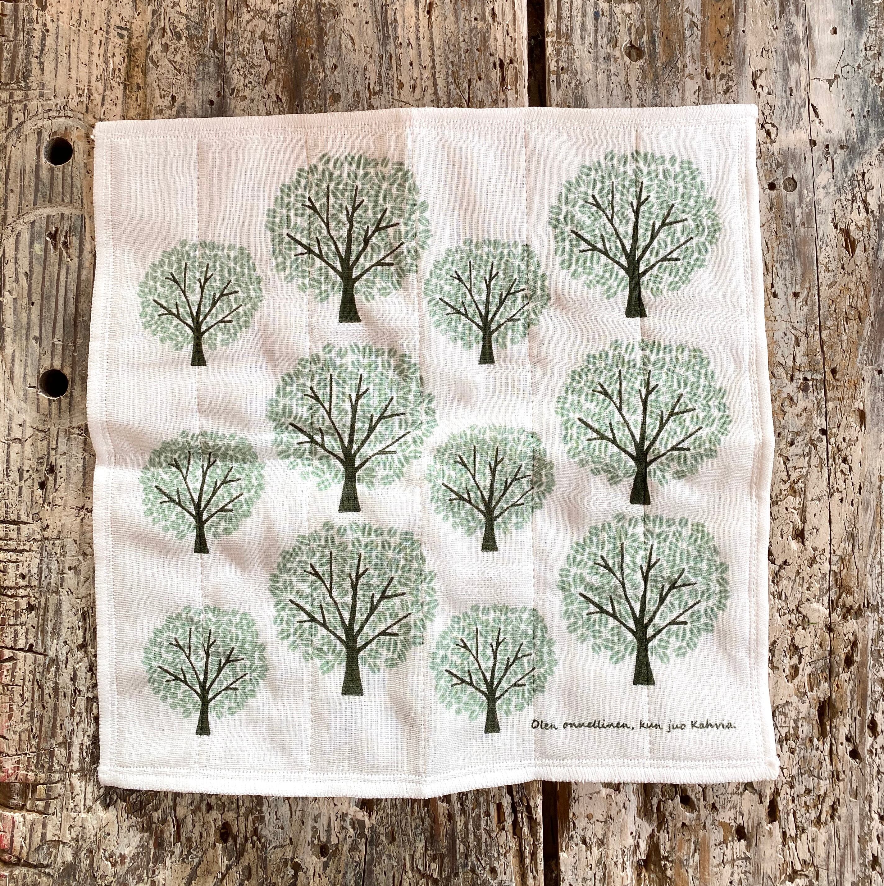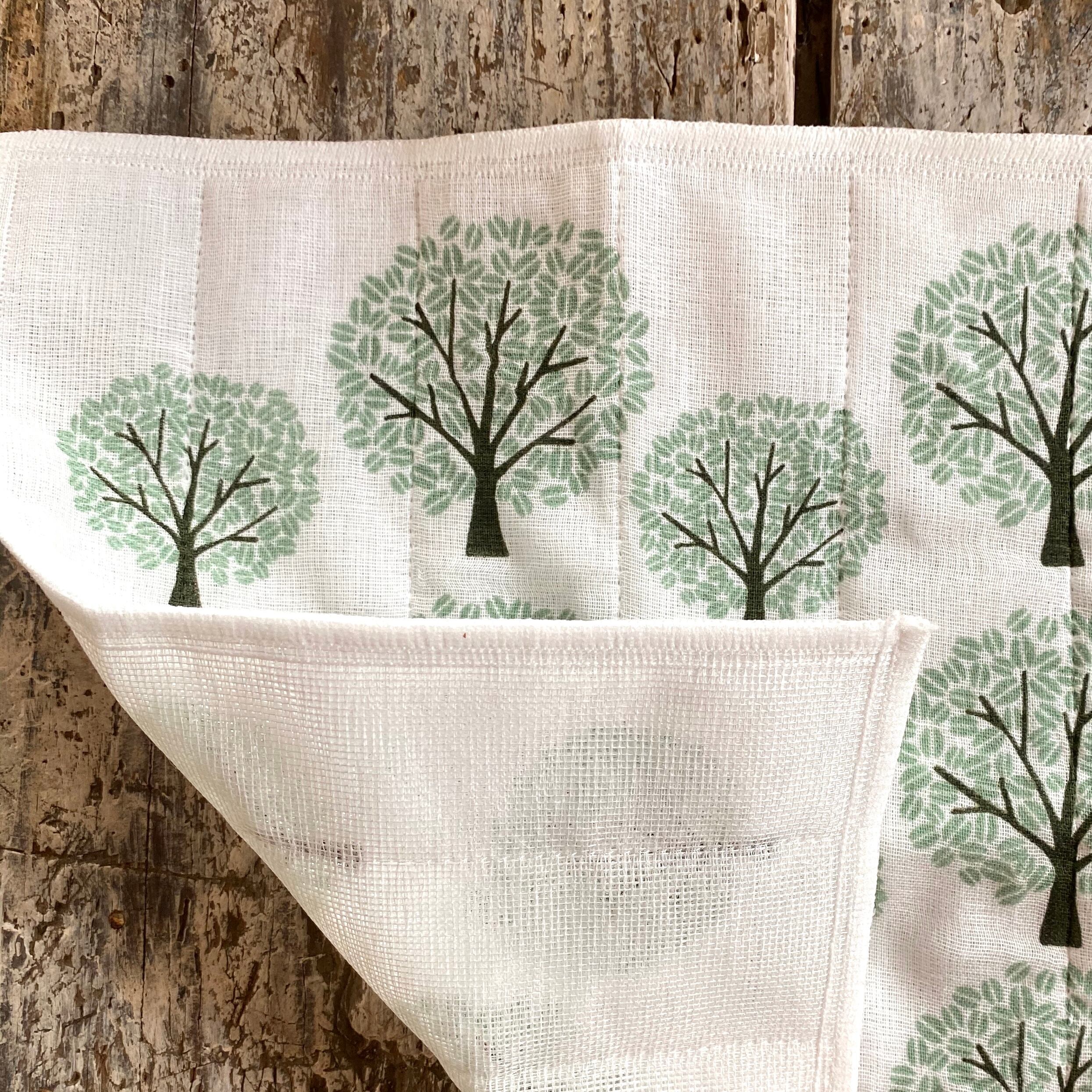 コーヒーの木のモチーフのかや生地布巾 2カラー