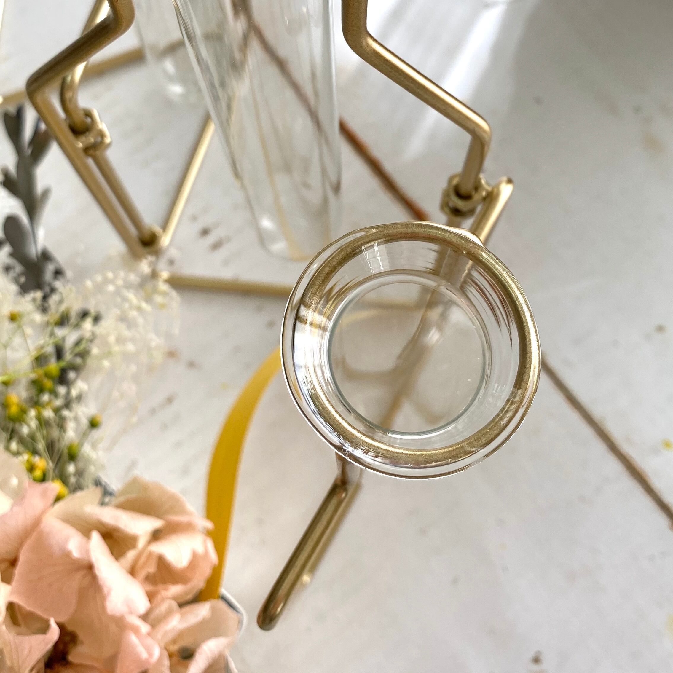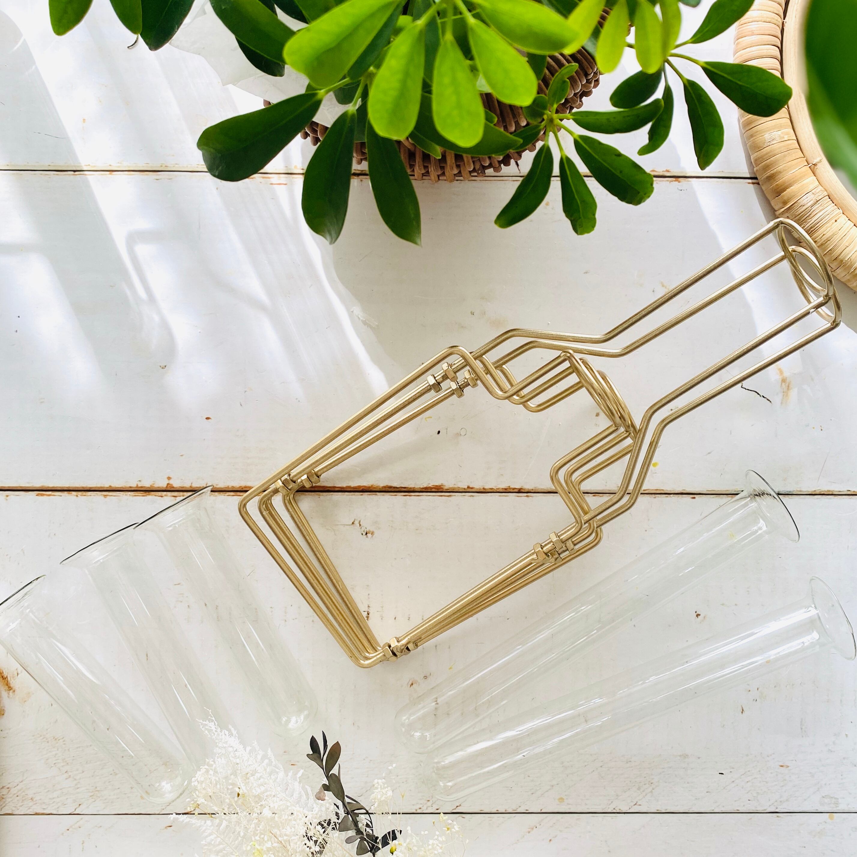 花瓶の形をしたワイヤーの造形がスタイリッシュな5連状の一輪挿しフラワーベースです。