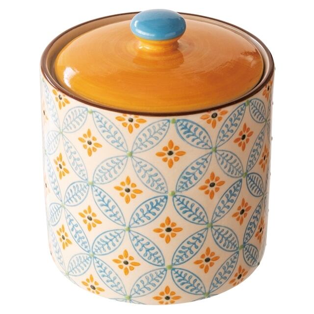 手描き風の花柄がかわいい陶器のキャニスターです。