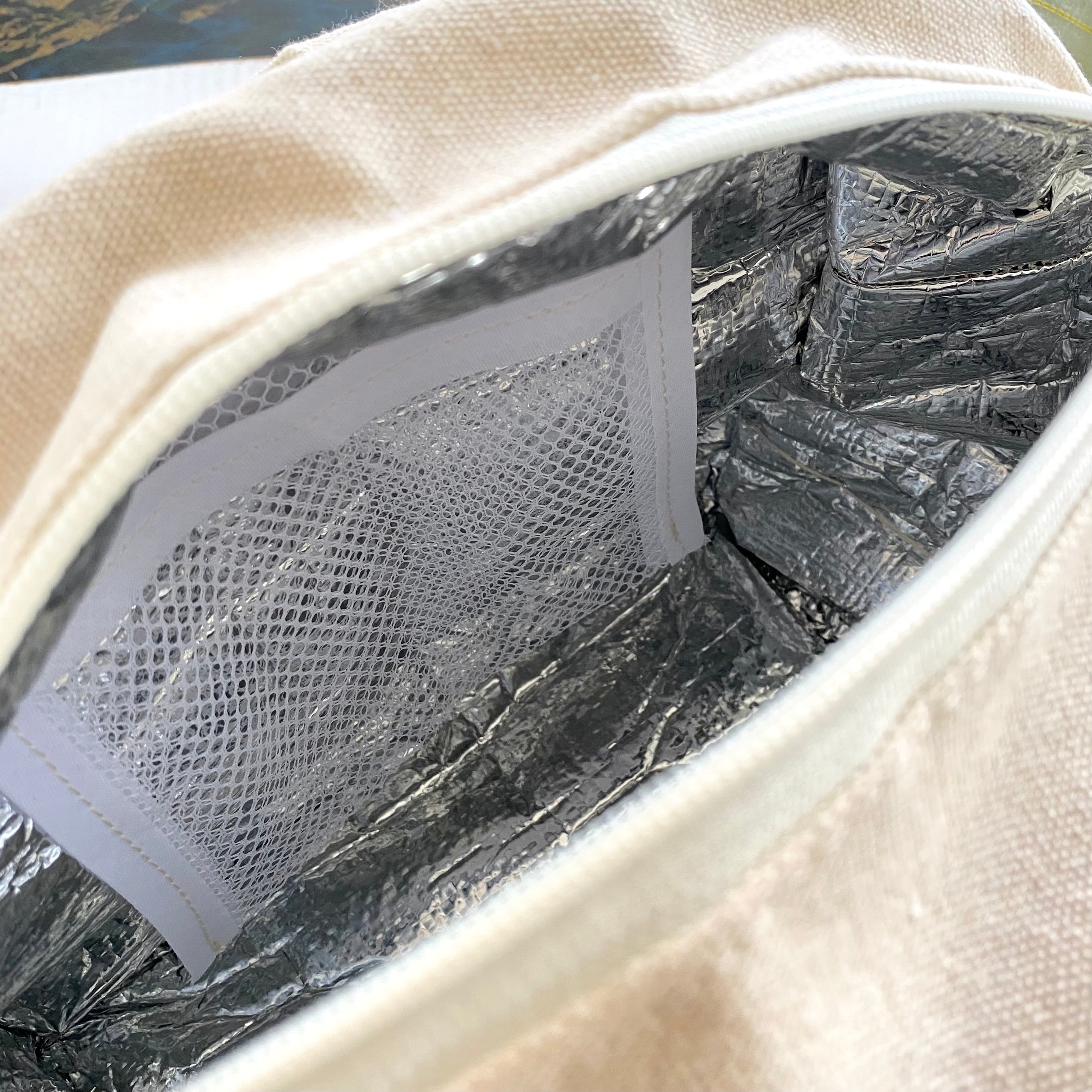 内側は、発砲ポリエチレンにアルミを張り合わせた構造になっています。