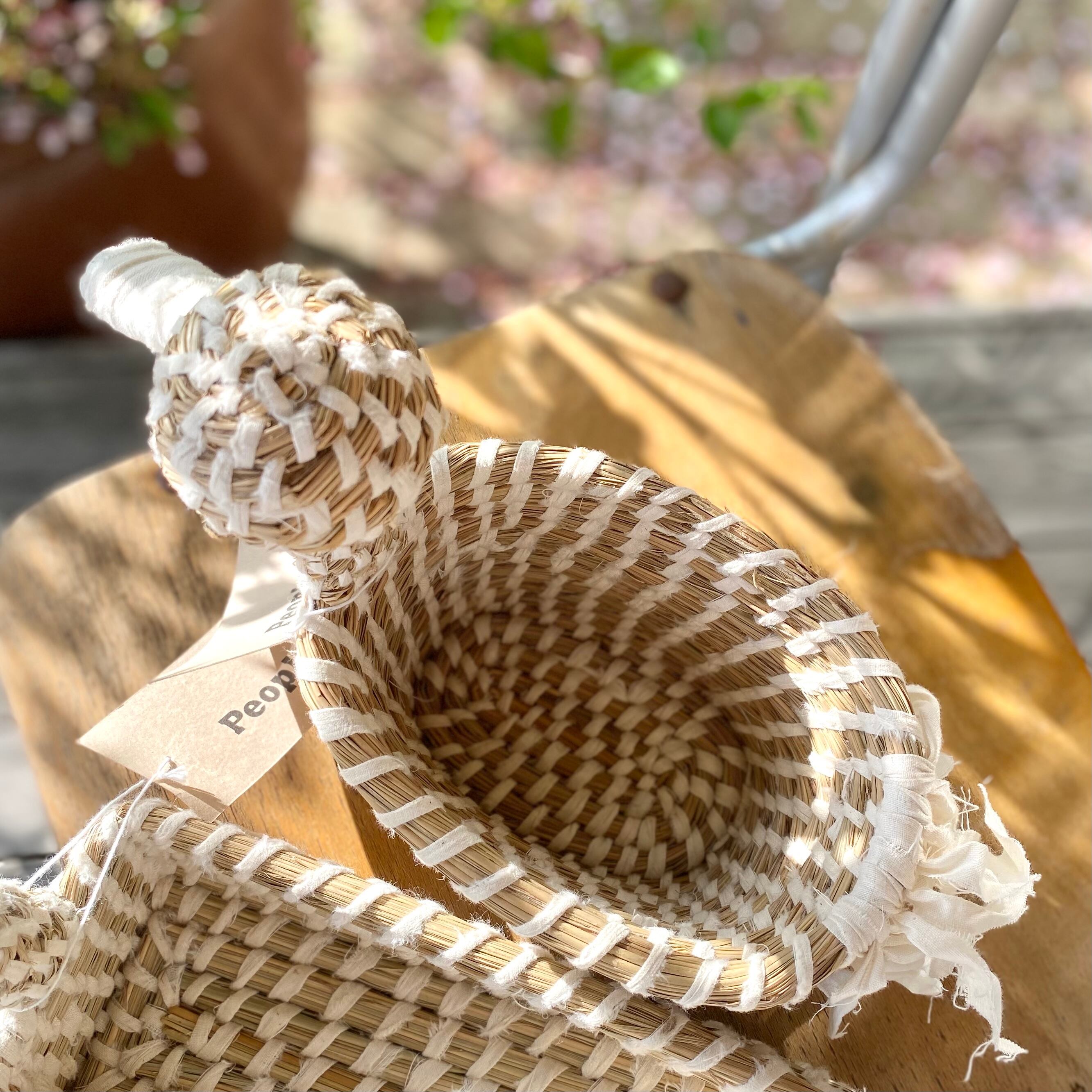 カイザ草で作られた鳥の形のバスケット 2デザイン