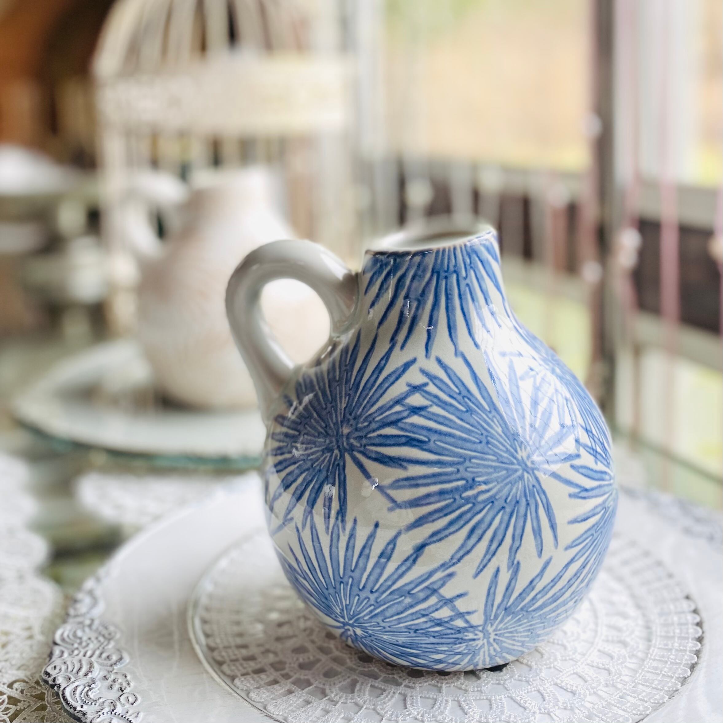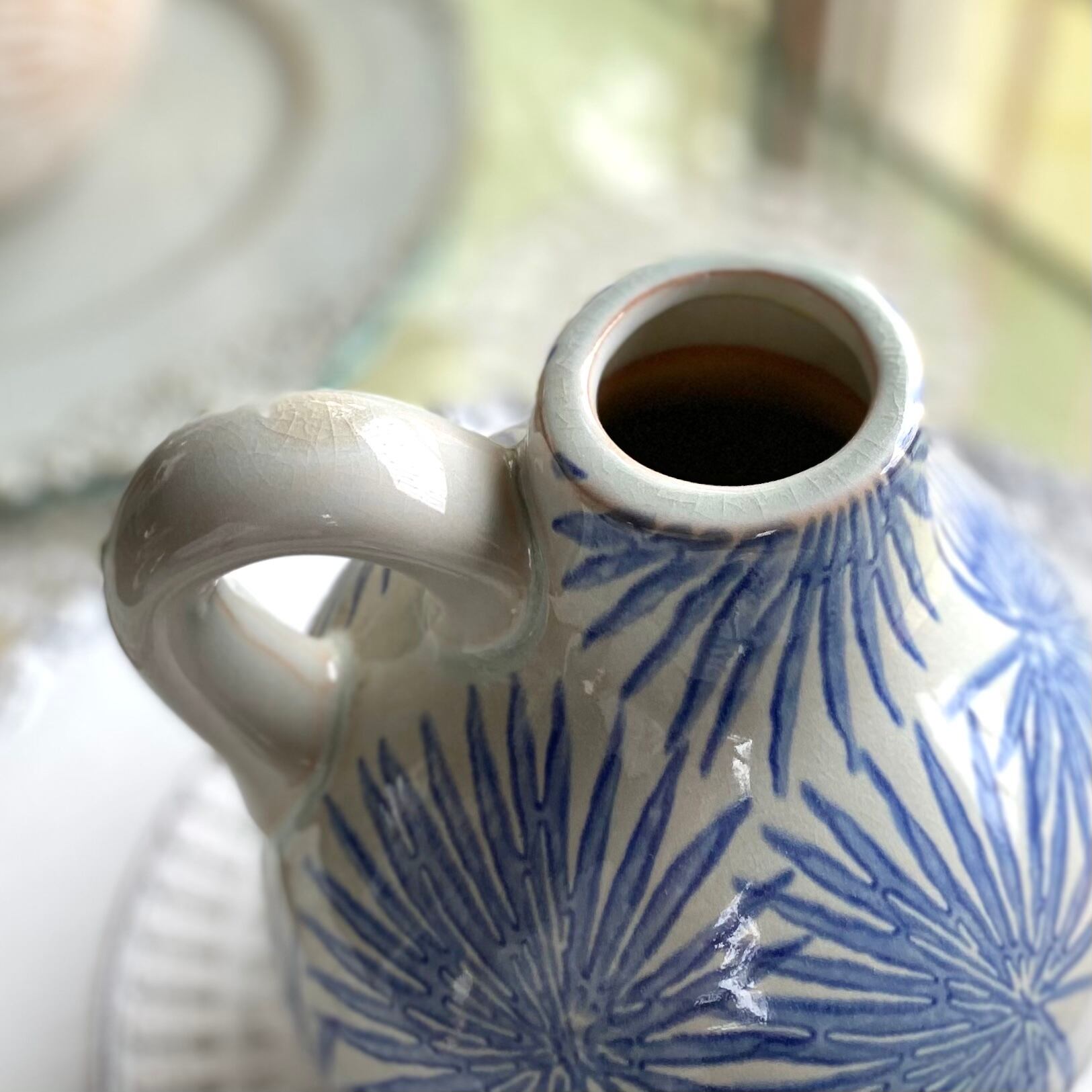 和洋どちらのお花にもあわせやすく、ナチュラルにもシックにもなるシノワズリ調の模様が魅力の花器です。