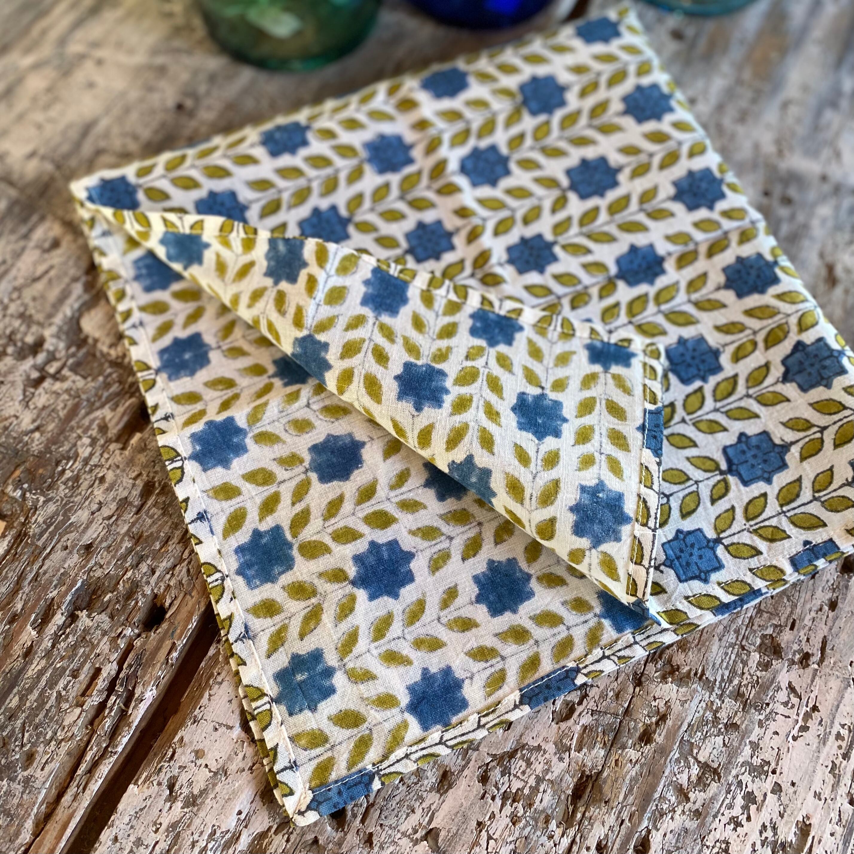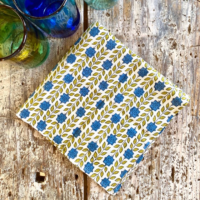 お弁当包みからスカーフ、インテリアまでいろいろ使えるハンドプリントのハンカチです。