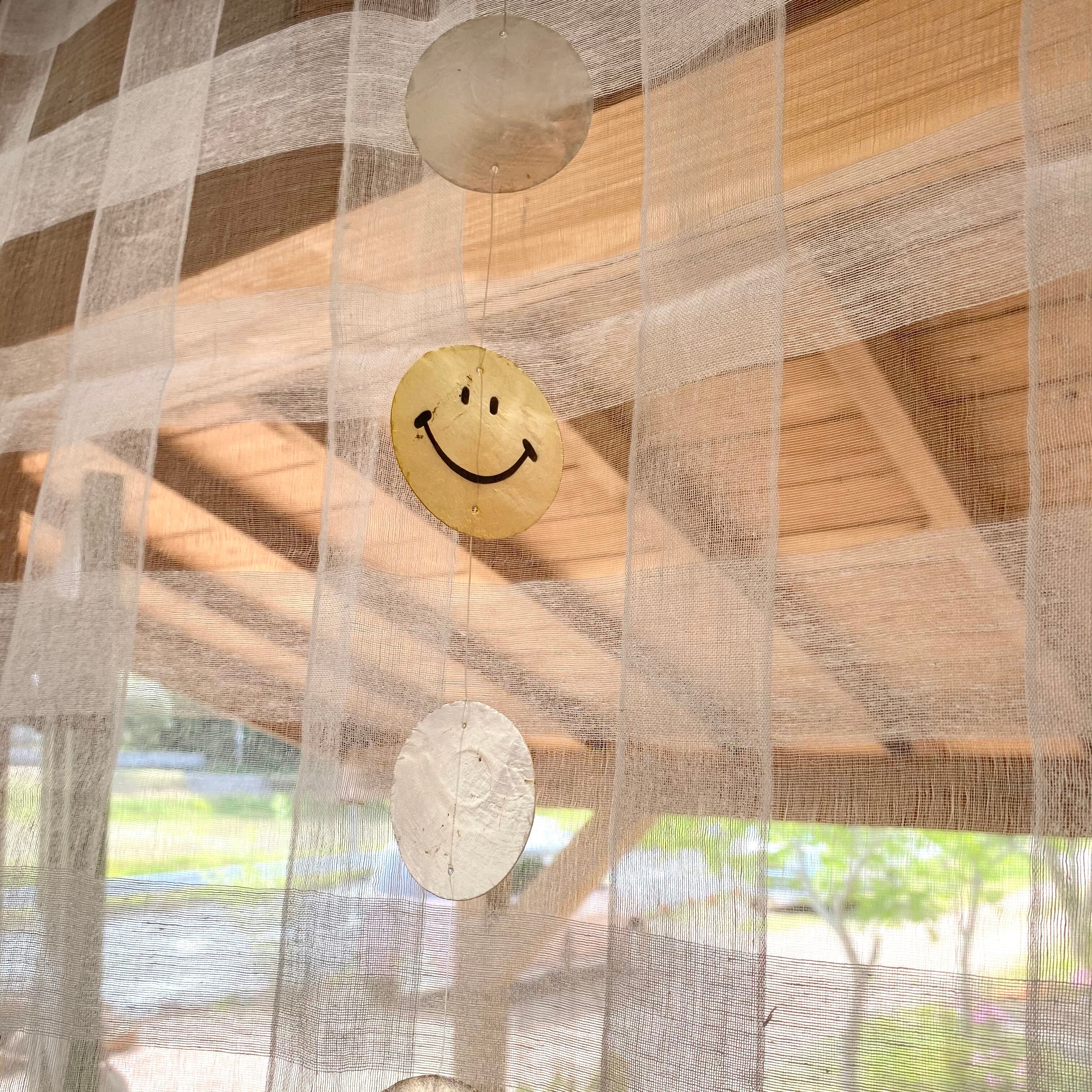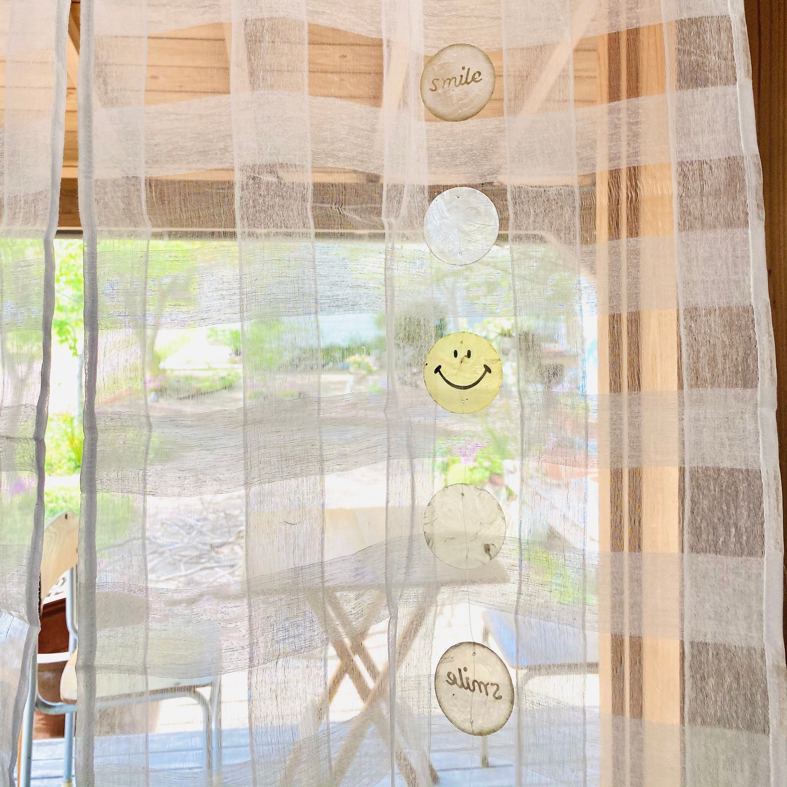 カピス貝を加工してスマイリーをペイントした可愛いガーランドです。 カーテンと一緒に飾るのも素敵だと思います。 天然の貝を加工しているため、不揃いであったり少々欠けている場合があります。 サイズ 約TL85cm 生産地 フィリピン 素材 カピス貝