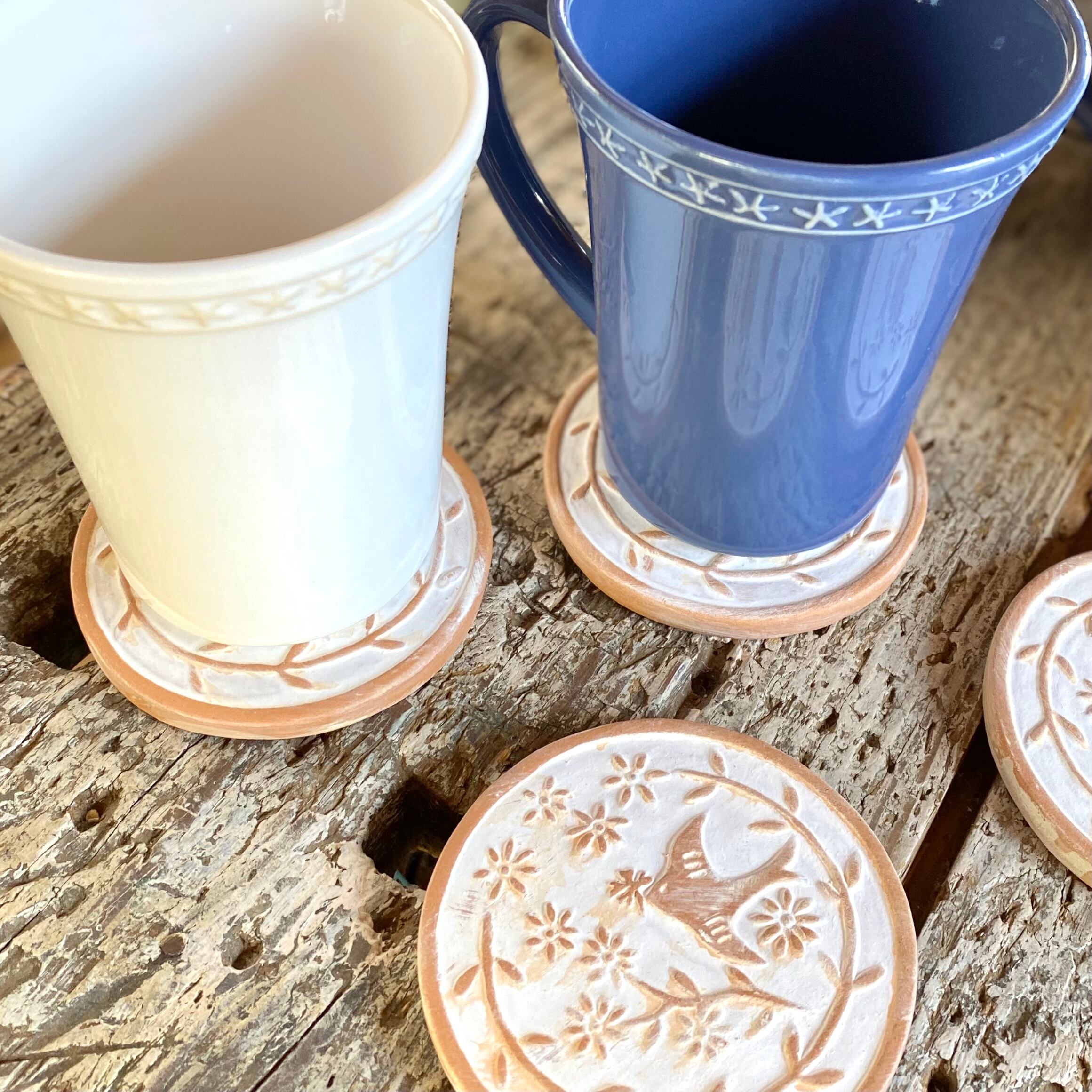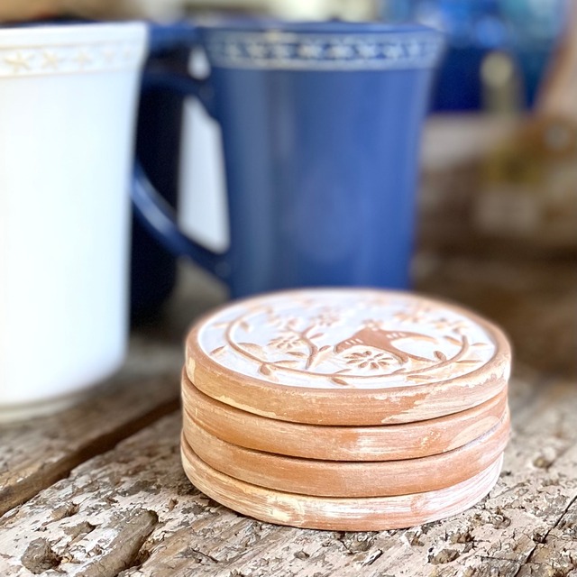 テラコッタの素朴な風合いのコースターです。 可愛らしいデザインなのでインテリアアイテムとしてもおすすめです。 ※写真は複数の在庫の中のいずれかのものです。 実際にお届けする商品とサイズ、色の濃淡などに個体差がありますので了承お願いいたします。 サイズ 直径約9cm