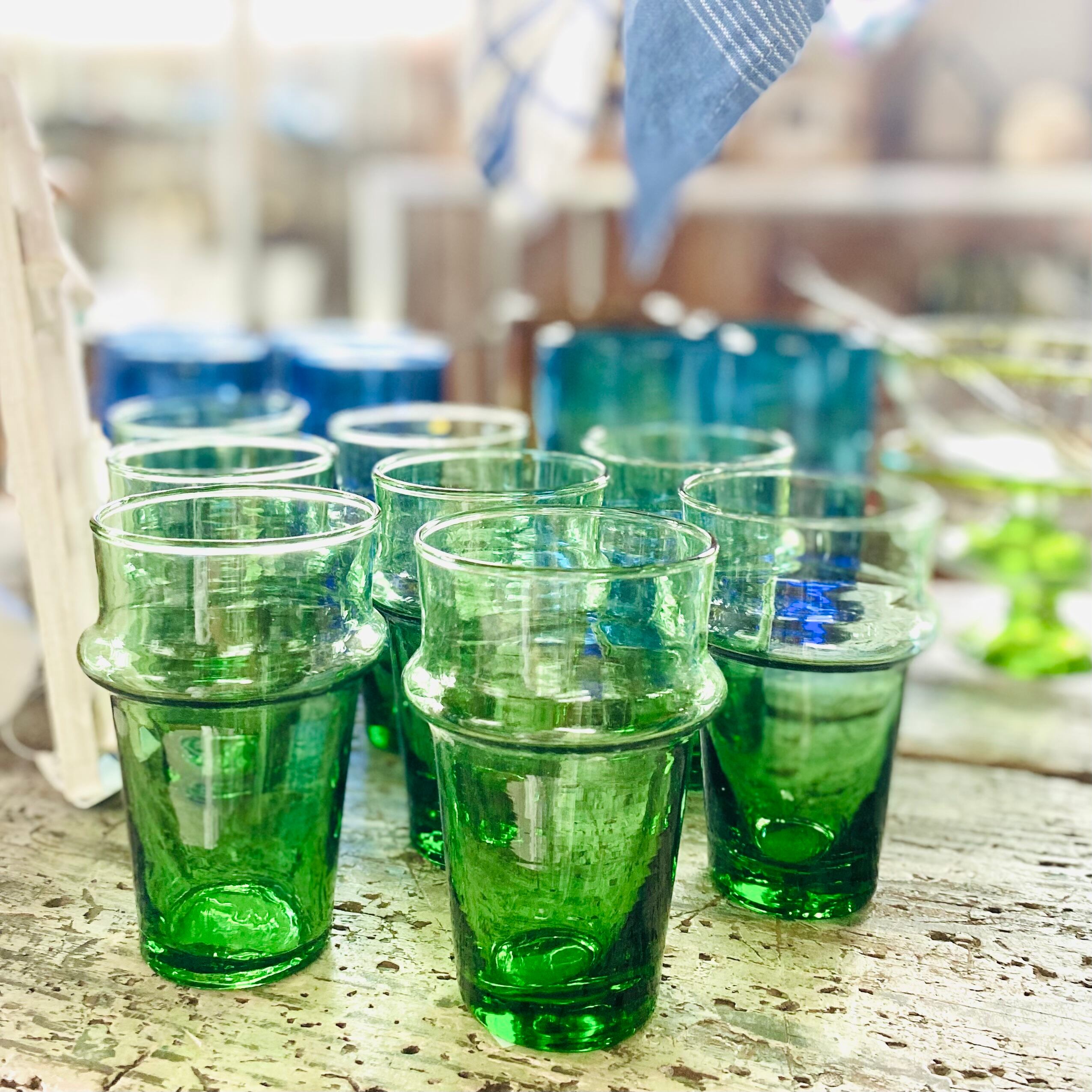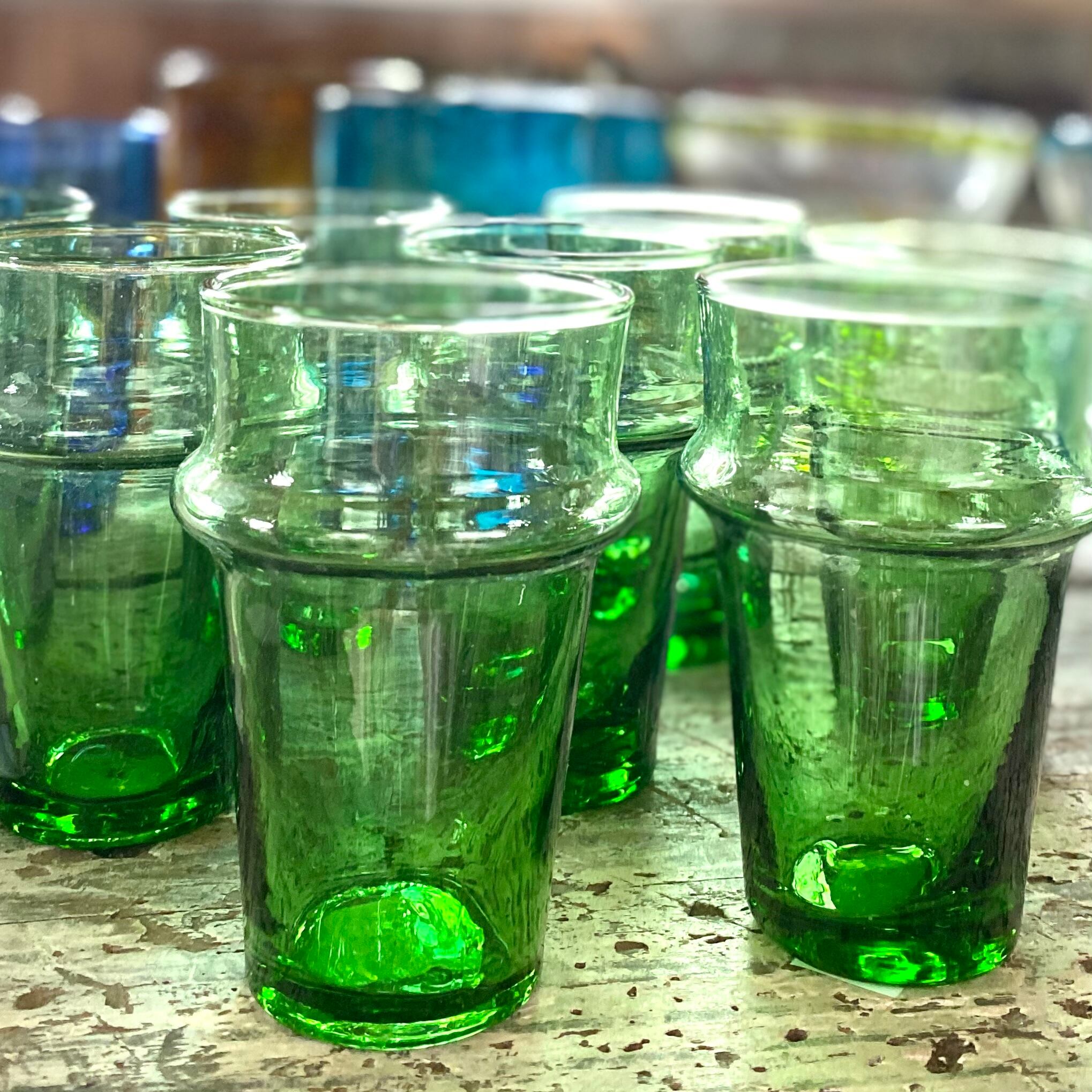 グリーカラーがとても綺麗なモロッコチャイグラスです。