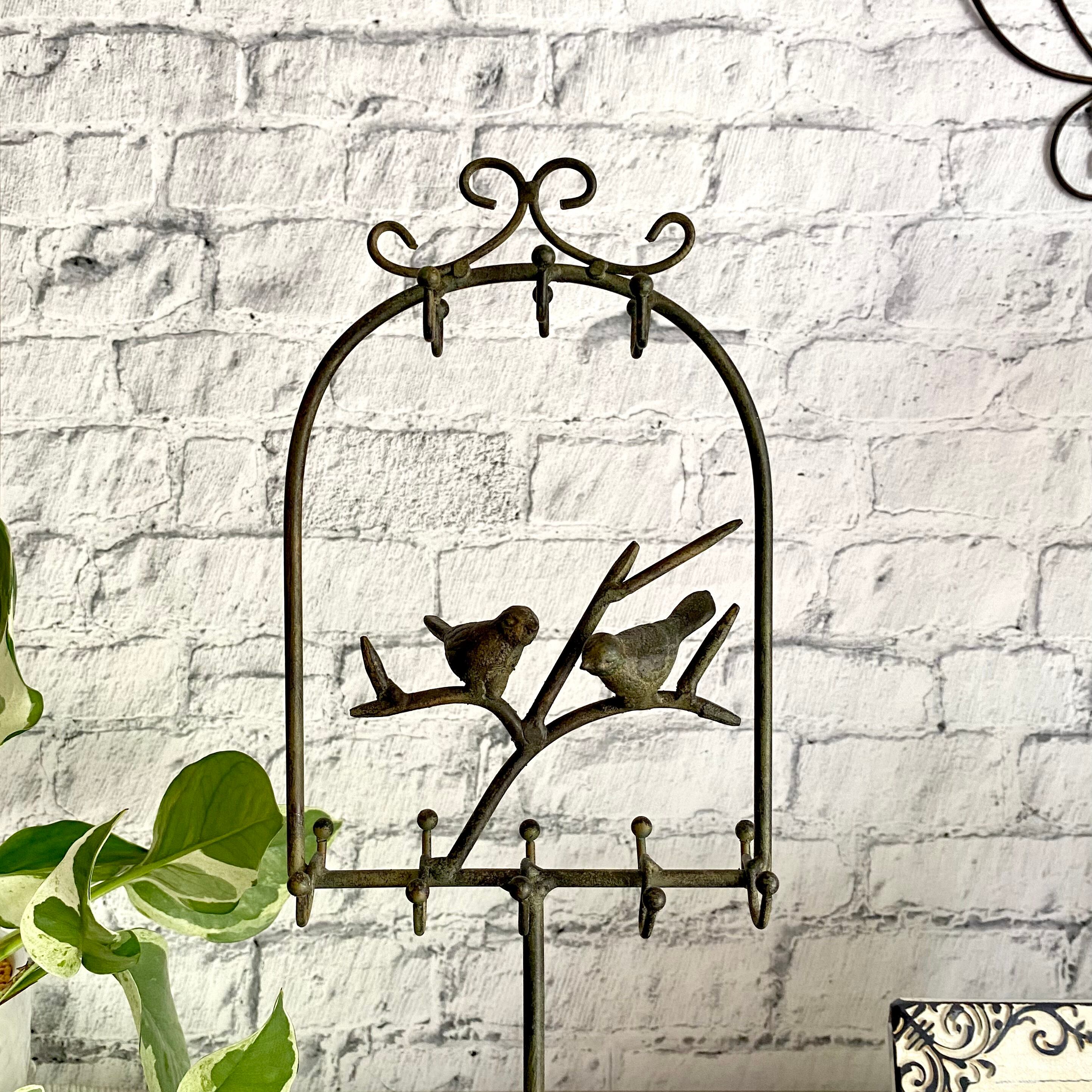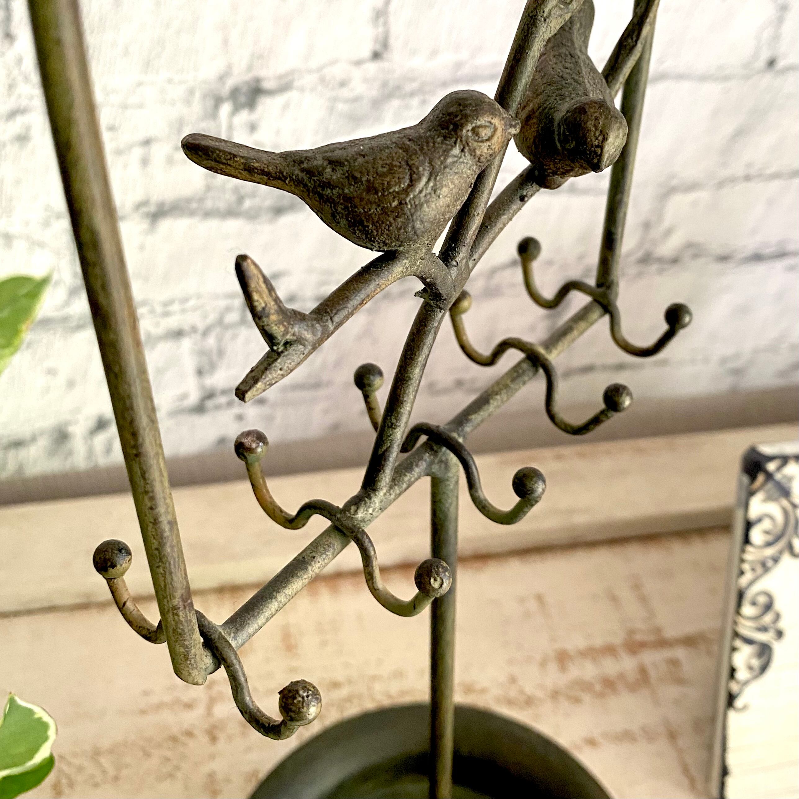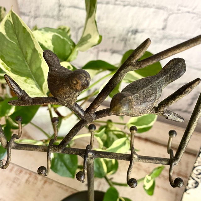 小鳥のモチーフが付いているアイアン製のアクセサリーホルダーです。