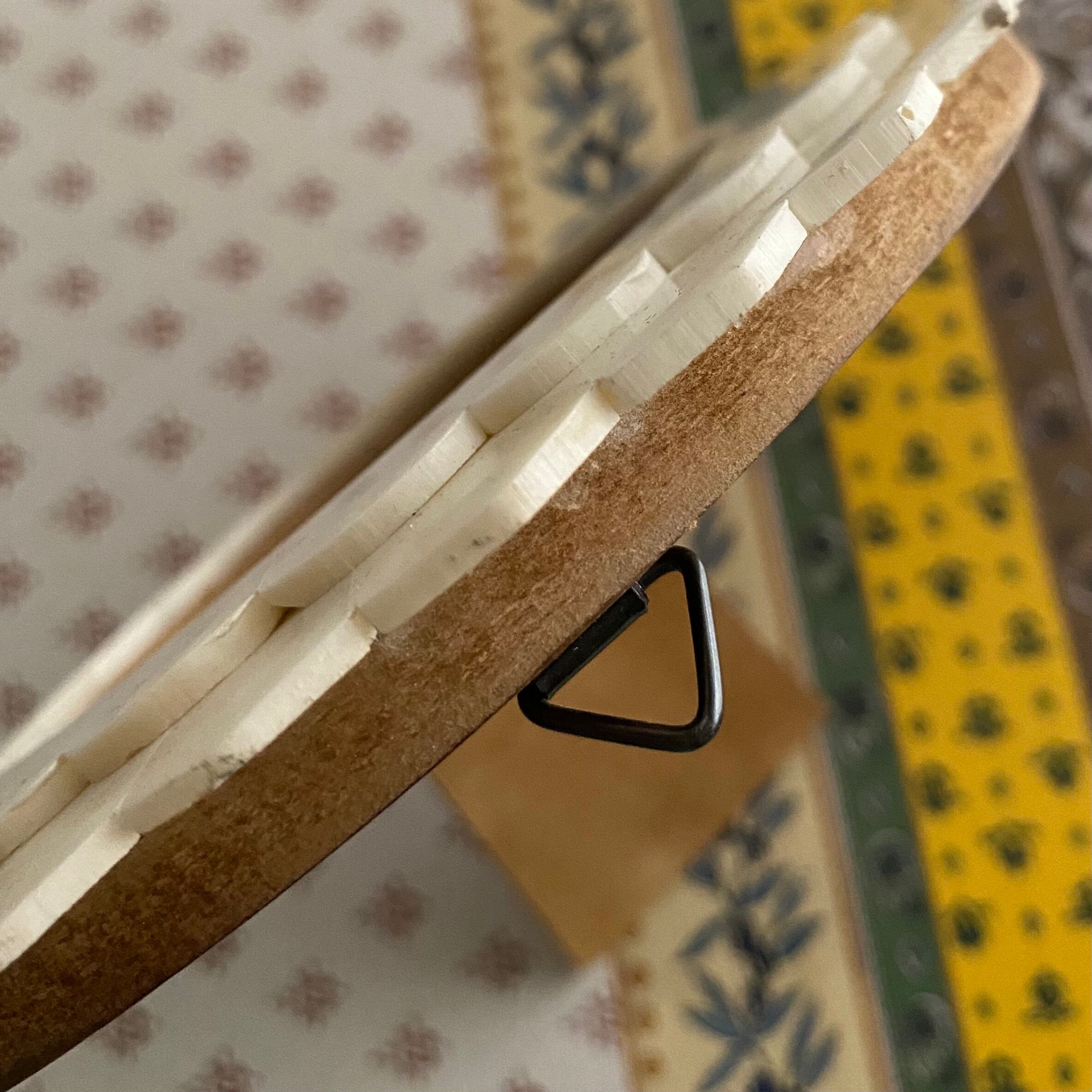 バッファローボーンを加工して作られているフォトフレームです。 優しい色調なのでナチュラルインテリアとの相性も良いと思います。 サイズ 直径約15cm 写真窓 直径約9cm 素材 バッファローボーン