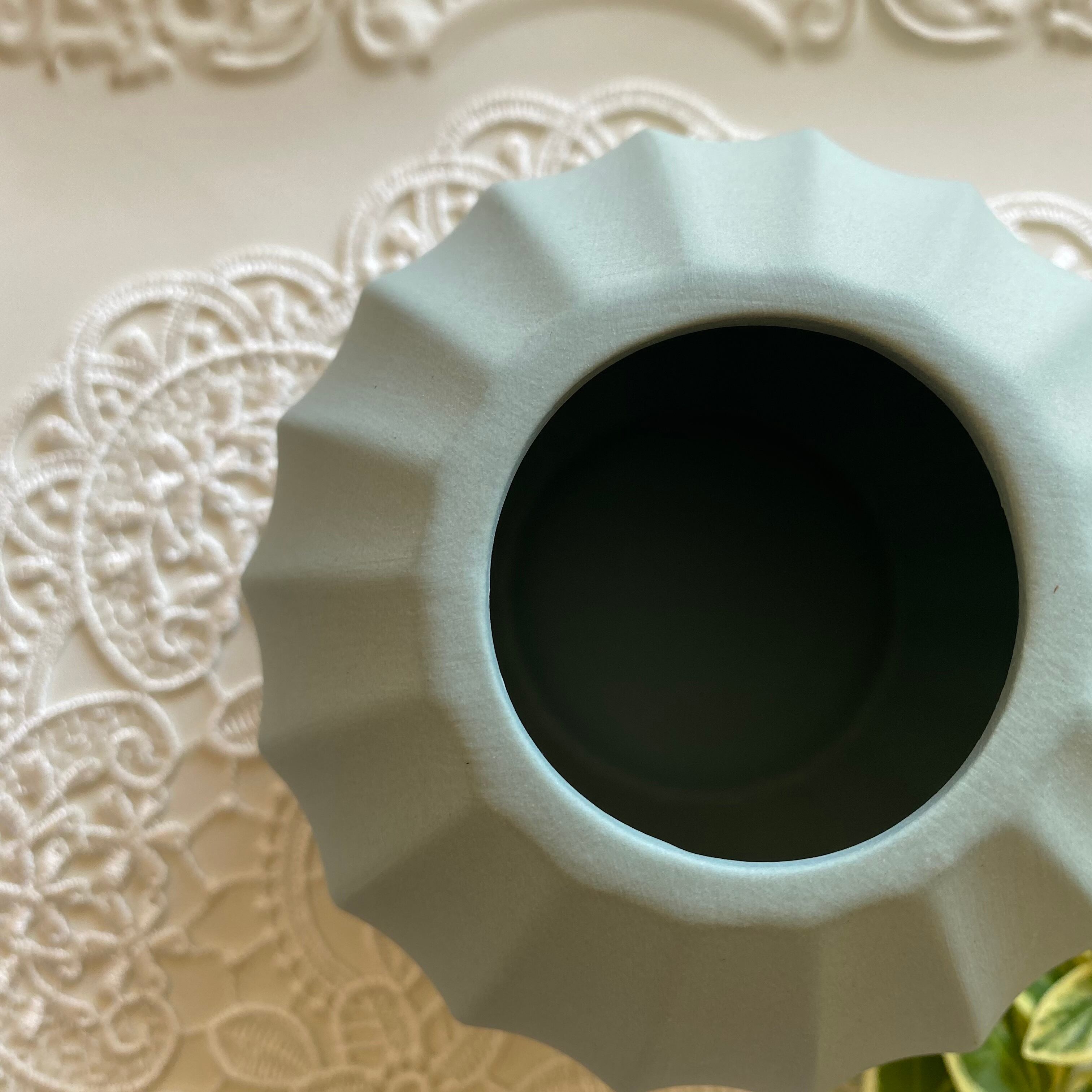 コロンとしたフォルムに縦のラインが入っていることで生まれる陰影のコントラストに上品さを感じます。