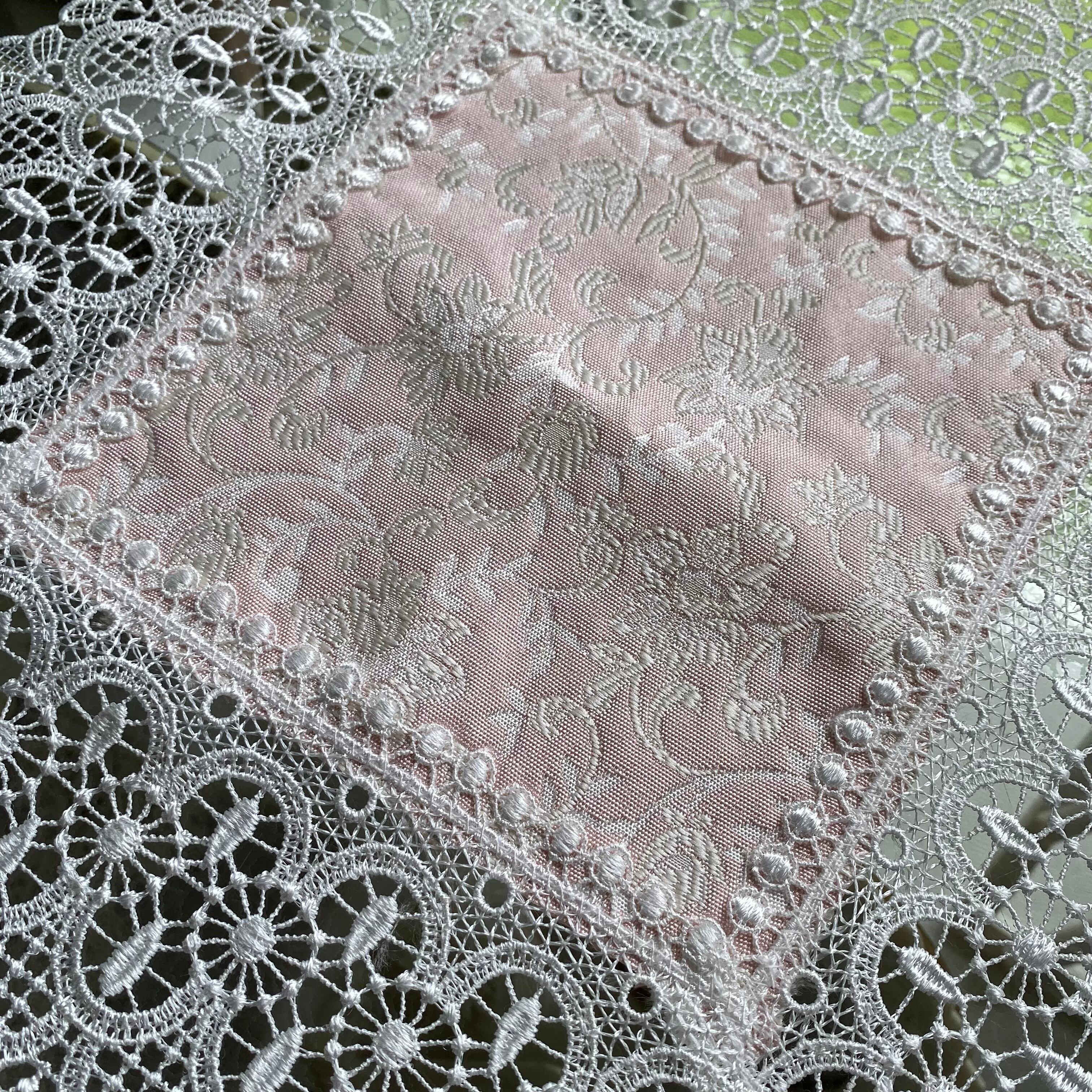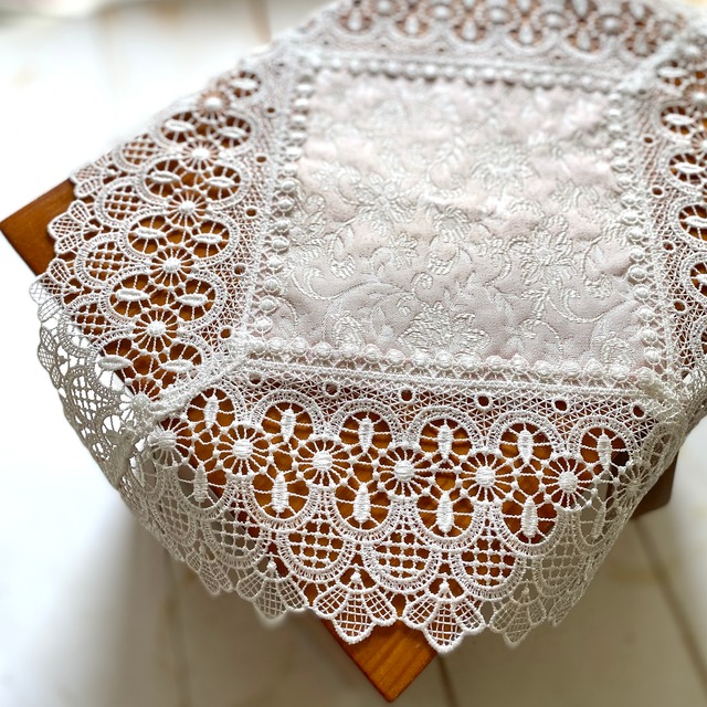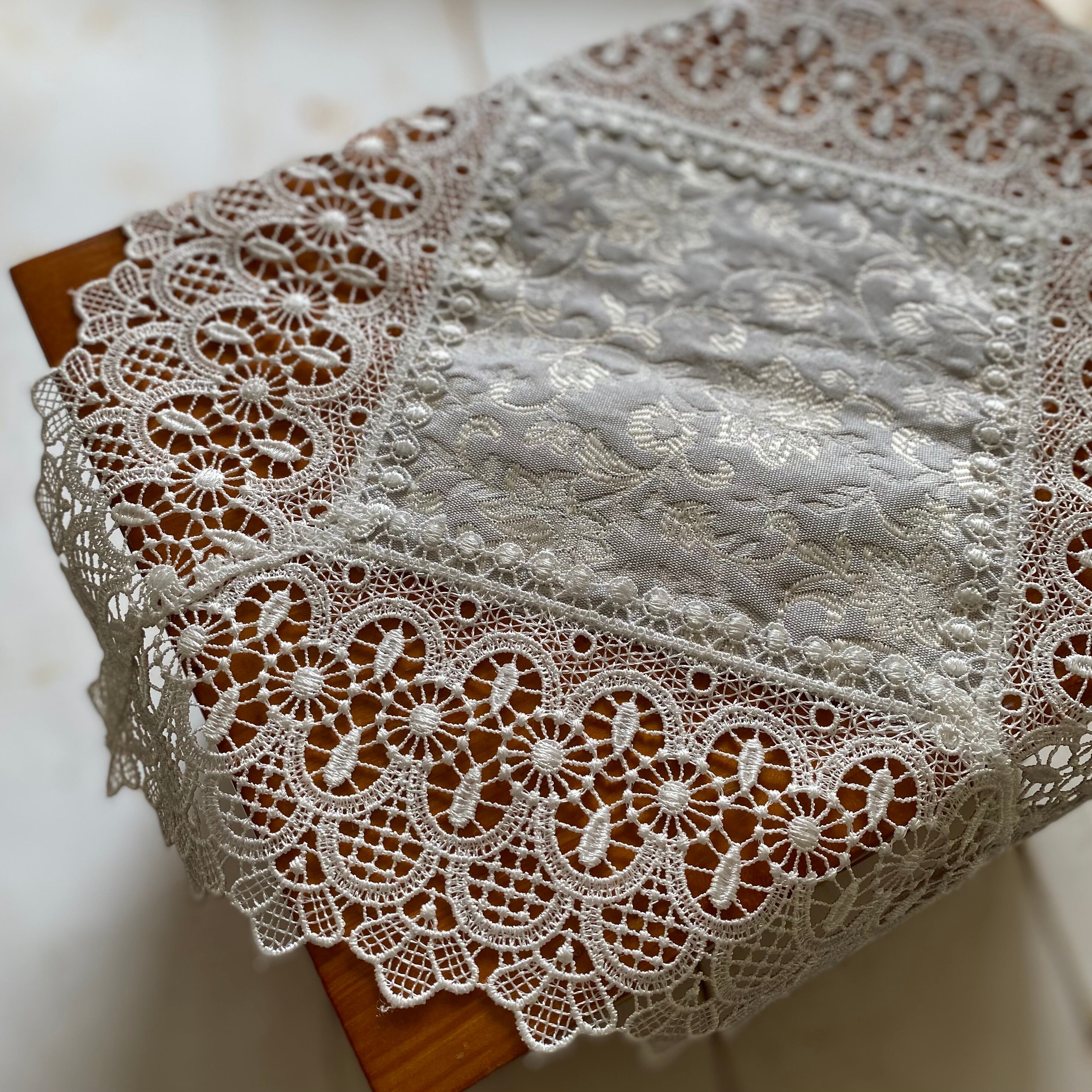 光沢のある生地をレースで縁どったデザインがお洒落なドイリーです。 優しい色調の2色をご用意いたしました。 生地には撥水加工を施しているので、水をはじきやすくお手入れが簡単ですので花瓶敷きにも安心してお使い頂けます。 ※折り畳んで発送いたします。 サイズ 約30 x 30cm 素材 ポリエステル100%