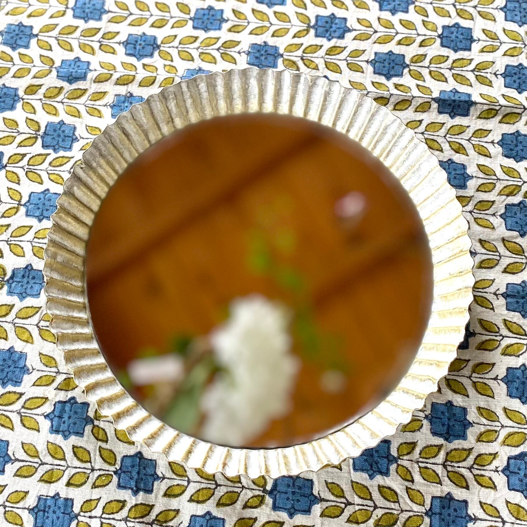 タルト型をイメージしたディスプレイベースです。 内底は鏡になっており、アレンジなどを素敵に演出してくれます。 背面には壁掛け・吊さげ用のフックがついているので、オシャレなディスプレイアイテムとして楽しめます。 サイズ 直径 約18×奥行 約3cm 素材 アイアン