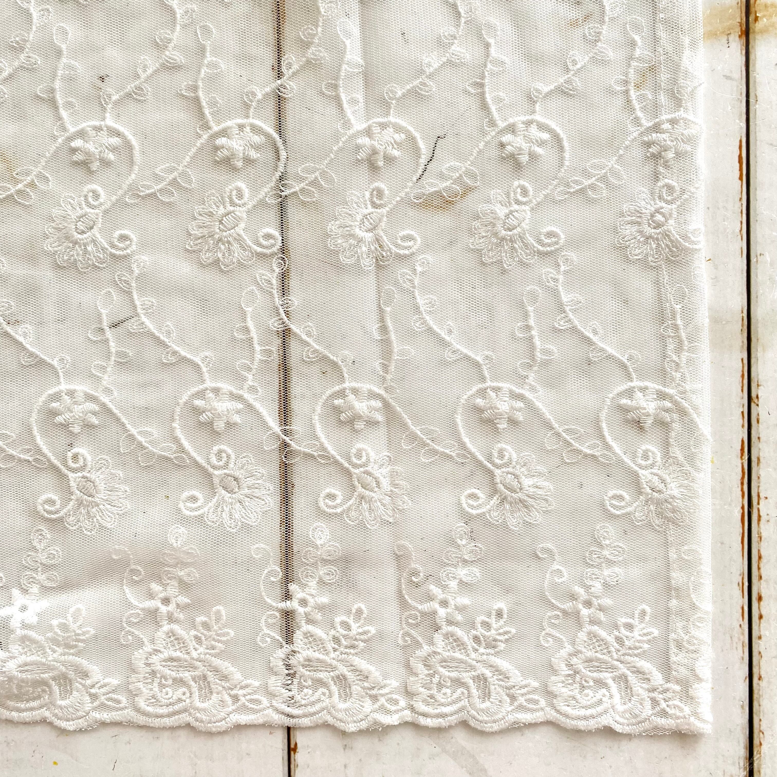 上品な刺繍が目を惹くカフェカーテンです。 オープン収納の目隠しやインテリアのアクセントにもなり、取り付けも簡単で気軽にインテリアのイメージを変えられる便利なアイテムです。 サイズ 縦45cm 横120cm 素材 生地 ポリエステル100% 刺繍糸 レーヨン100% レース ポリエステル100%