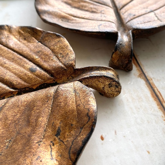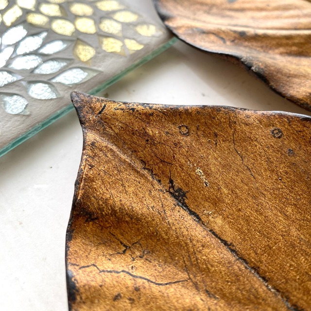 シックなブラウンカラーのリーフ型トレイです。 少し波打っているデザインで色のコントラストが生まれとても素敵です。 サイズ 約W19xD11.5xH2cm 素材 ポリジレン