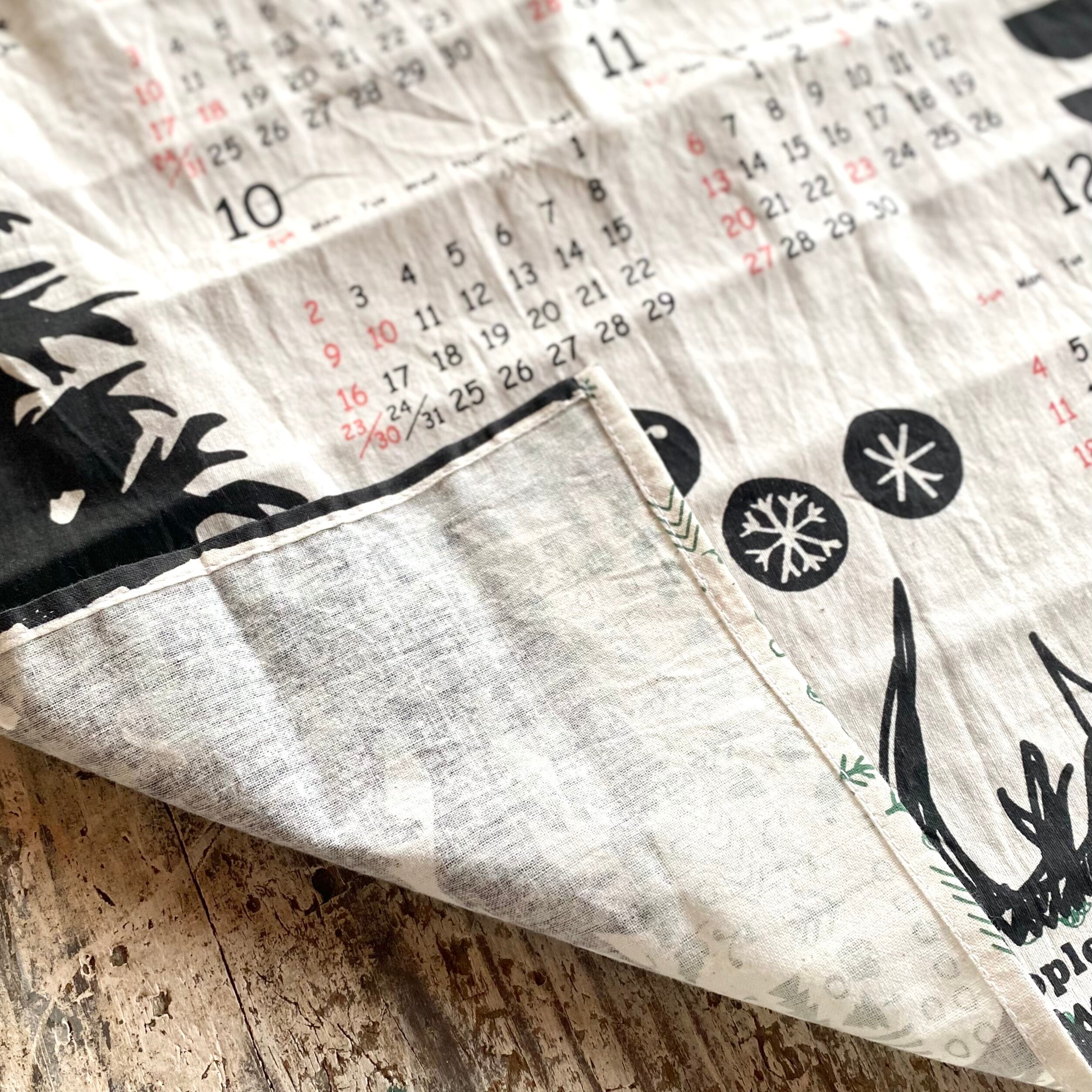 ヒュッゲな感覚をイメージされたデザインの年間カレンダーです。 コットンファブリックですので破れる心配もありませんね。 こちらは、再入荷の予定のない商品となっております。 サイズ 約タテ60×ヨコ40cm 素材 コットン 竹