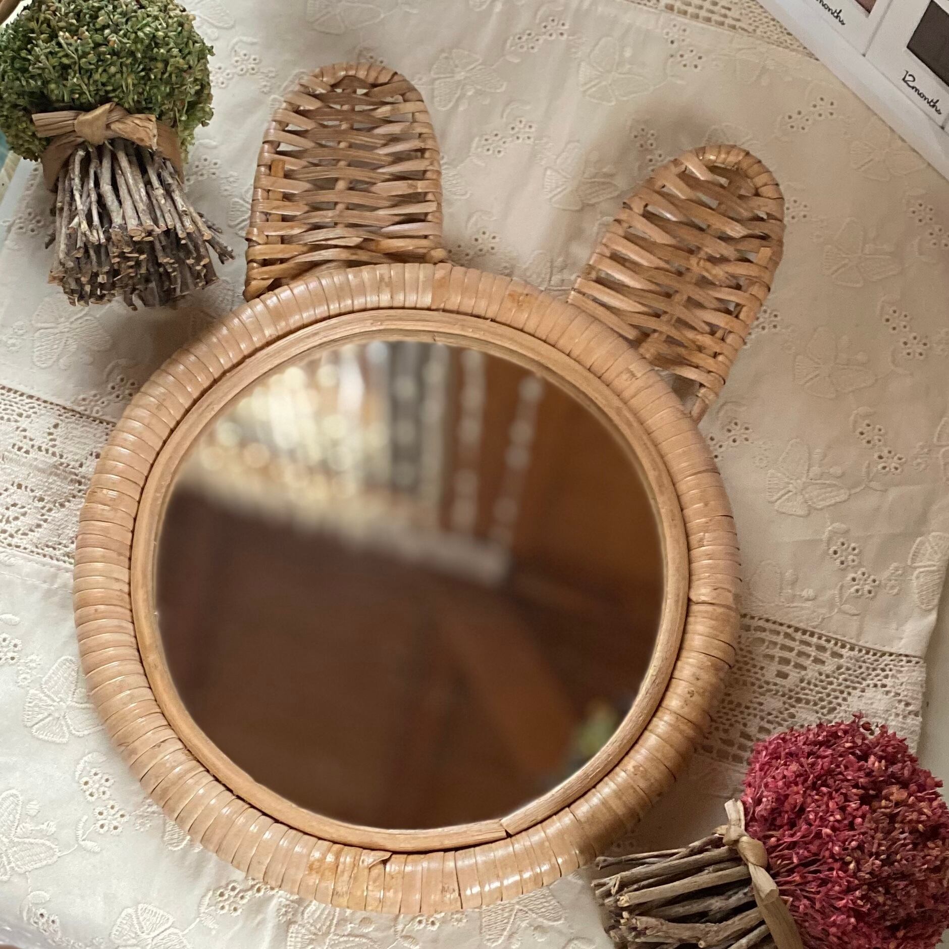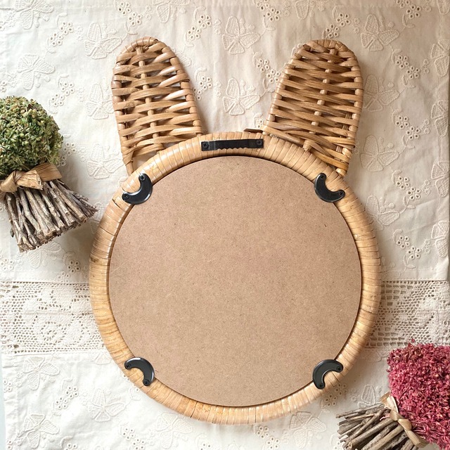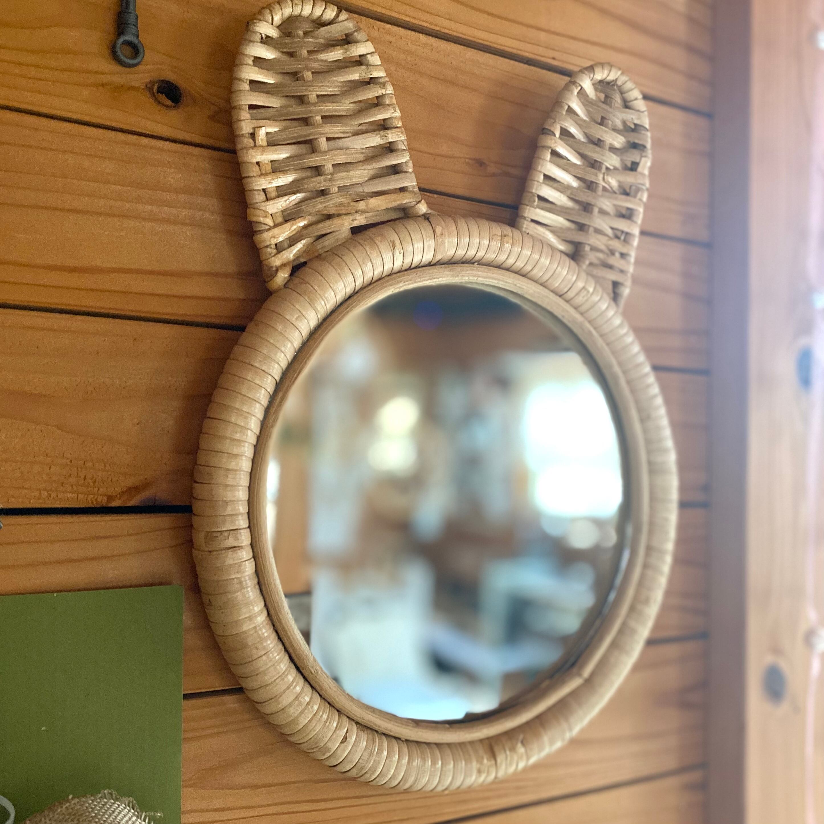 動物の耳をラタンで編んだとてもキュートなミラーです。