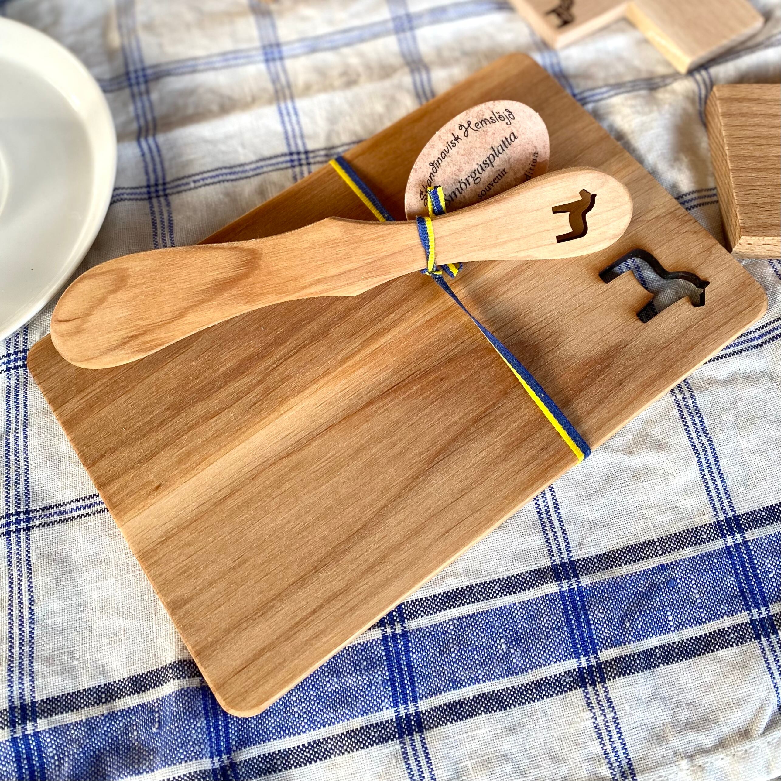 使えば使うほどに味わいが増すハンノキで作られたバターナイフ&ボードセットです。