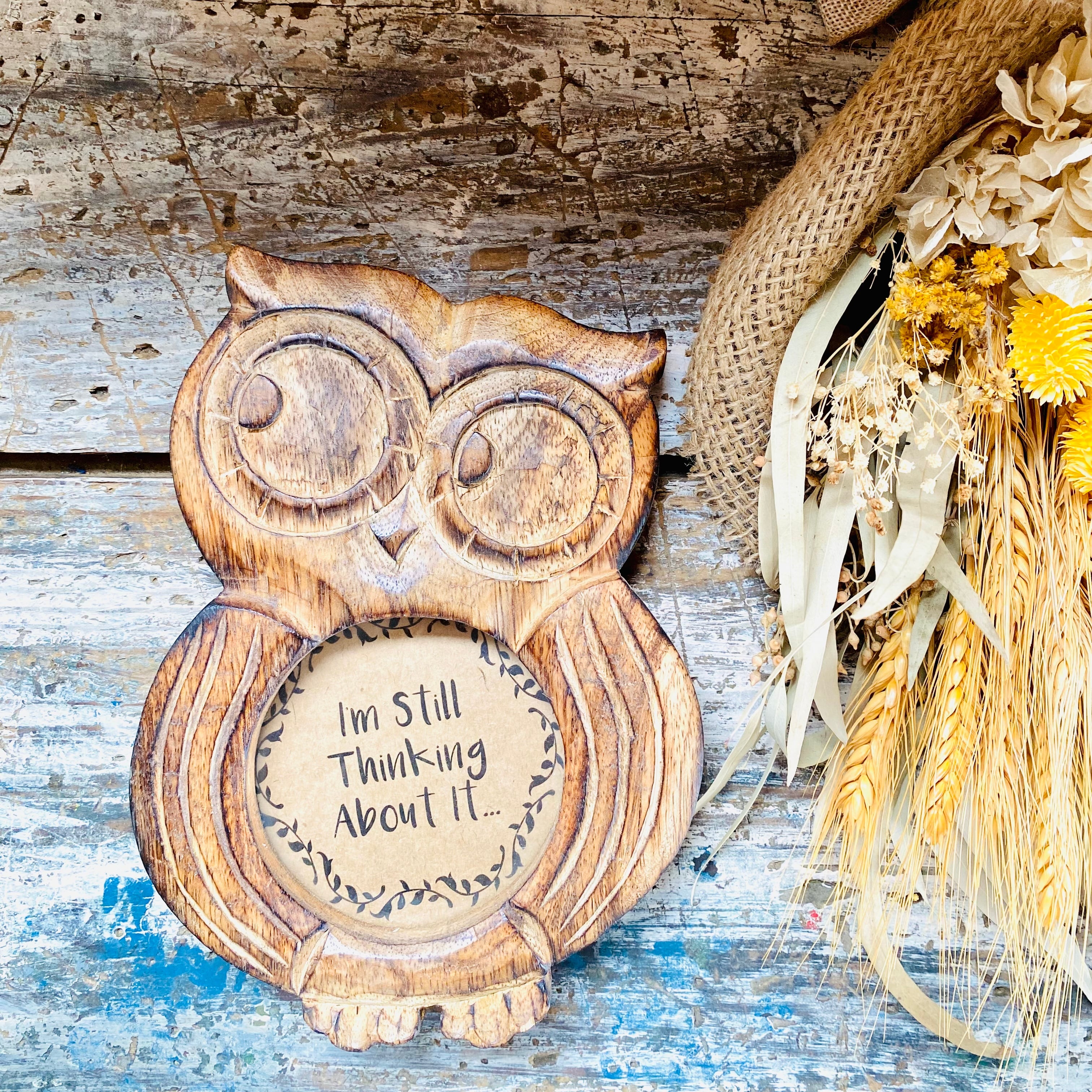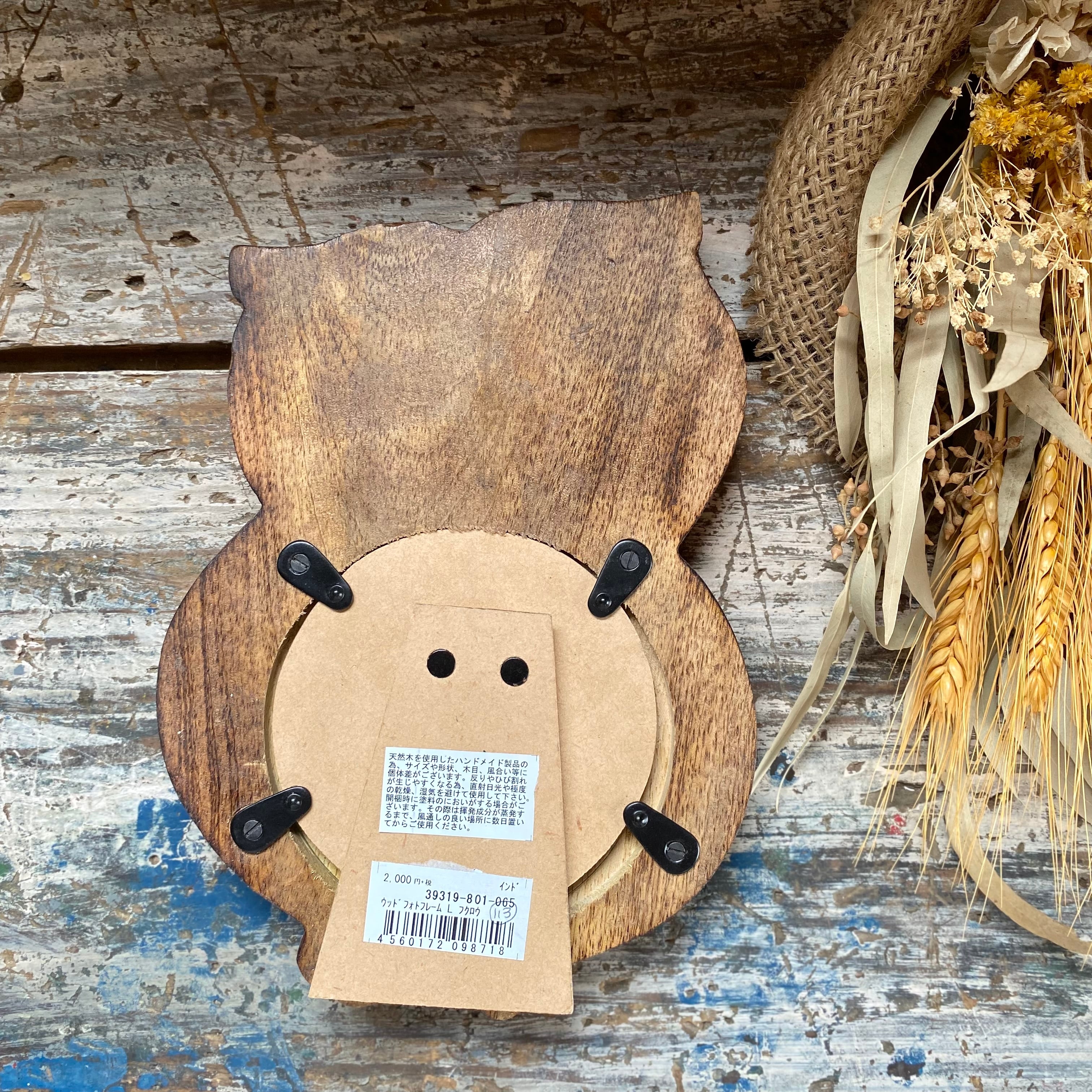 眼鏡をかけたようなまんまるな目の表情がユニークなフクロウのフォトフレームです。 マンゴーウッドが持つ温かみのある素材感です。 サイズ 約23×17cm 生産地 インド 素材 マンゴーウッド