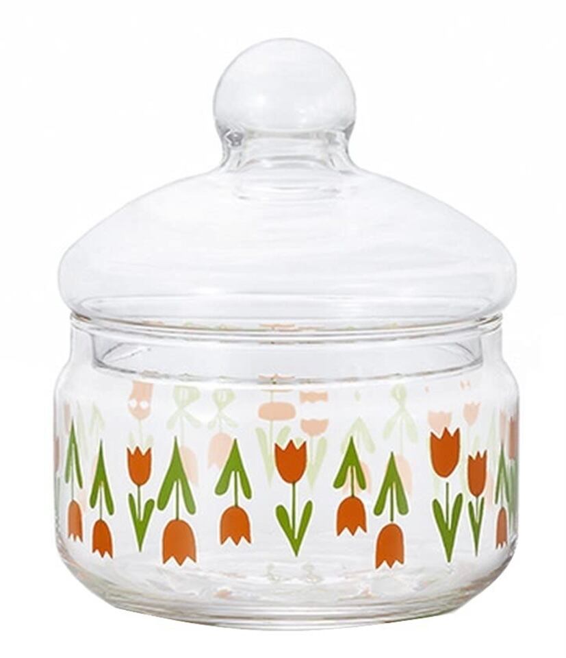 やわらかなタッチで描かれた「風船」は、昭和44(1969)年に発売された柄です。ガラスの容器の中にふわふわと浮かぶさまが、昭和当時の懐かしい空気をやさしく運んできてくれるかのようです。赤いお花もチャームポイントとなっています。