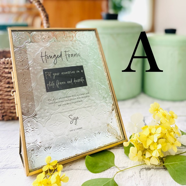 レトロなガラスの風合いが素敵な、どこか懐かしいモザイクの入ったガラスのフォトフレームです。 両面ガラスなので、写真の他にも押し花などを飾るのも素敵てす♪ サイズ 約W150 x H200 x D55mm 重さ 約550g 素材 ガラス, 鉄
